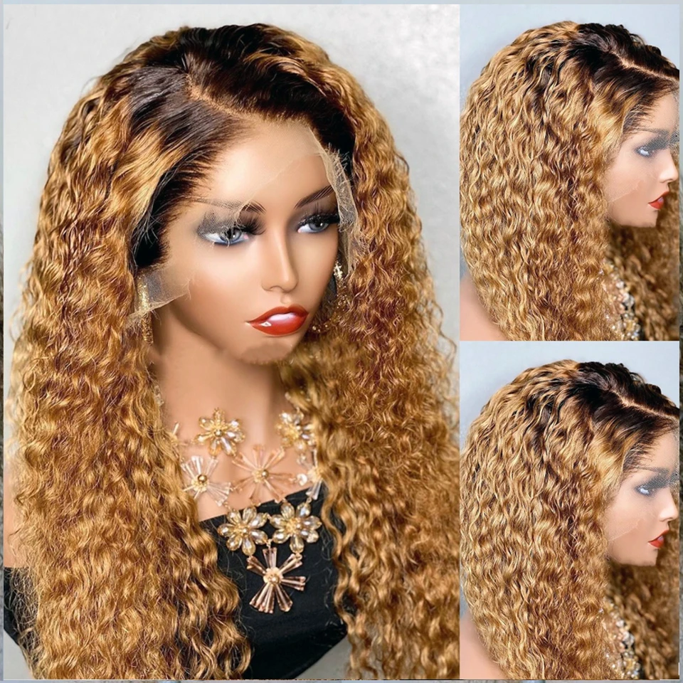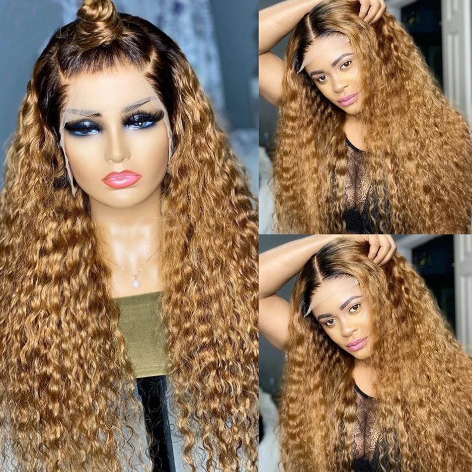 1B 27 ombre блонд 26-дюймовый свободный кудрявый синтетический кружевной передний парик бесклеевые термостойкие волосы натуральные волосы для женщин парики