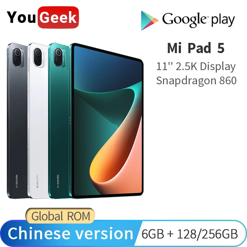 Планшеты Xiaomi Mi Pad 5, глобальная прошивка, 128 ГБ256 ГБ, процессор Snapdragon 860, экран 5 дюймов 2,5 K, планшет, 13 МП, аккумулятор 8720 мАч, китайская версия