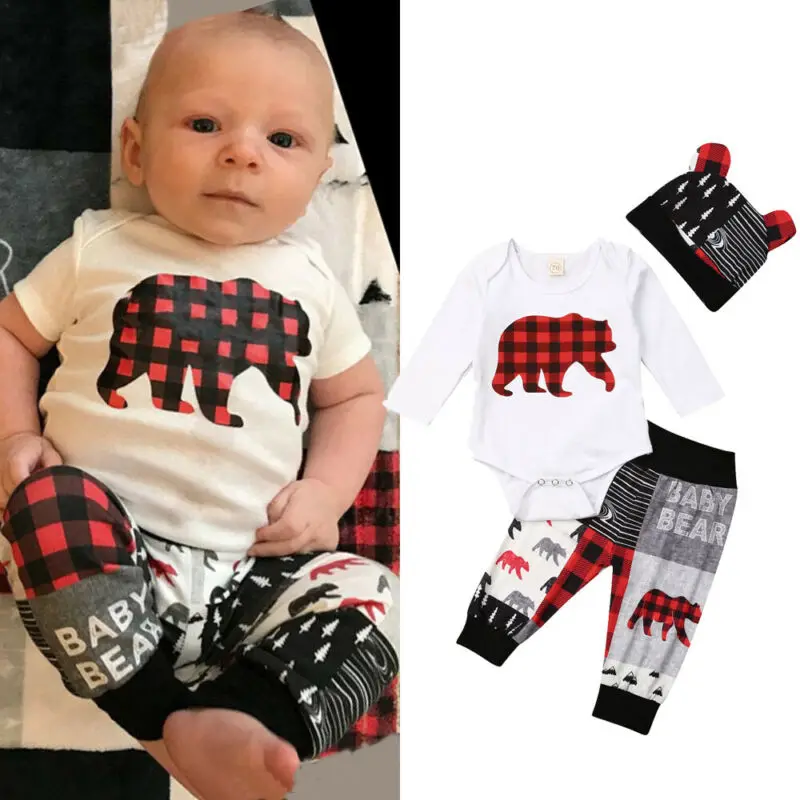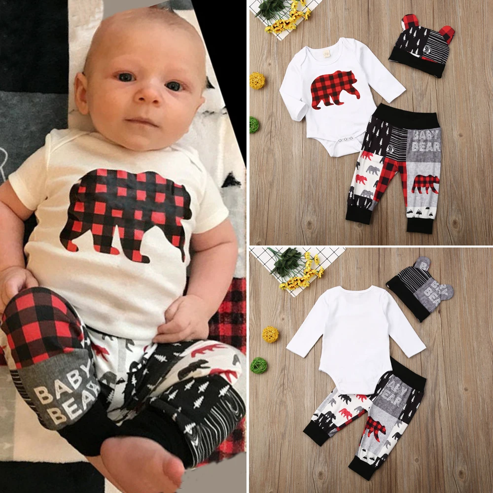 3 шт., детский комплект одежды для новорожденных, с принтом медведя