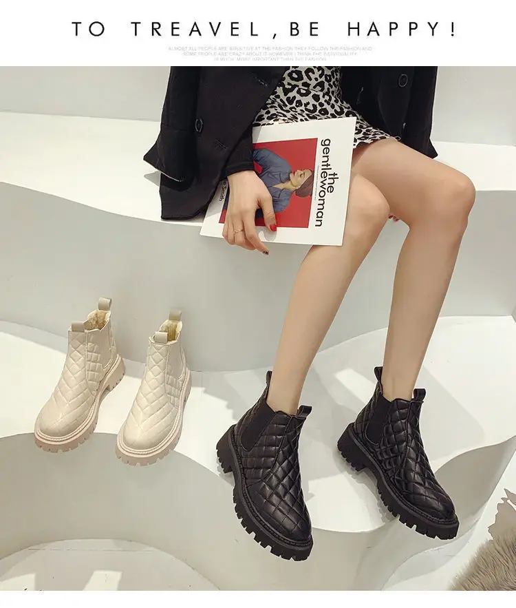 Осенние тонкие ботильоны на толстой подошве в британском стиле, Три...