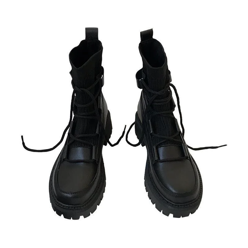 Женские ботинки Martin, новинка 2021, Женские повседневные эластичные тканевые ботинки-носки, модная женская обувь с перекрестной шнуровкой, ботинки на платформе, готические женские