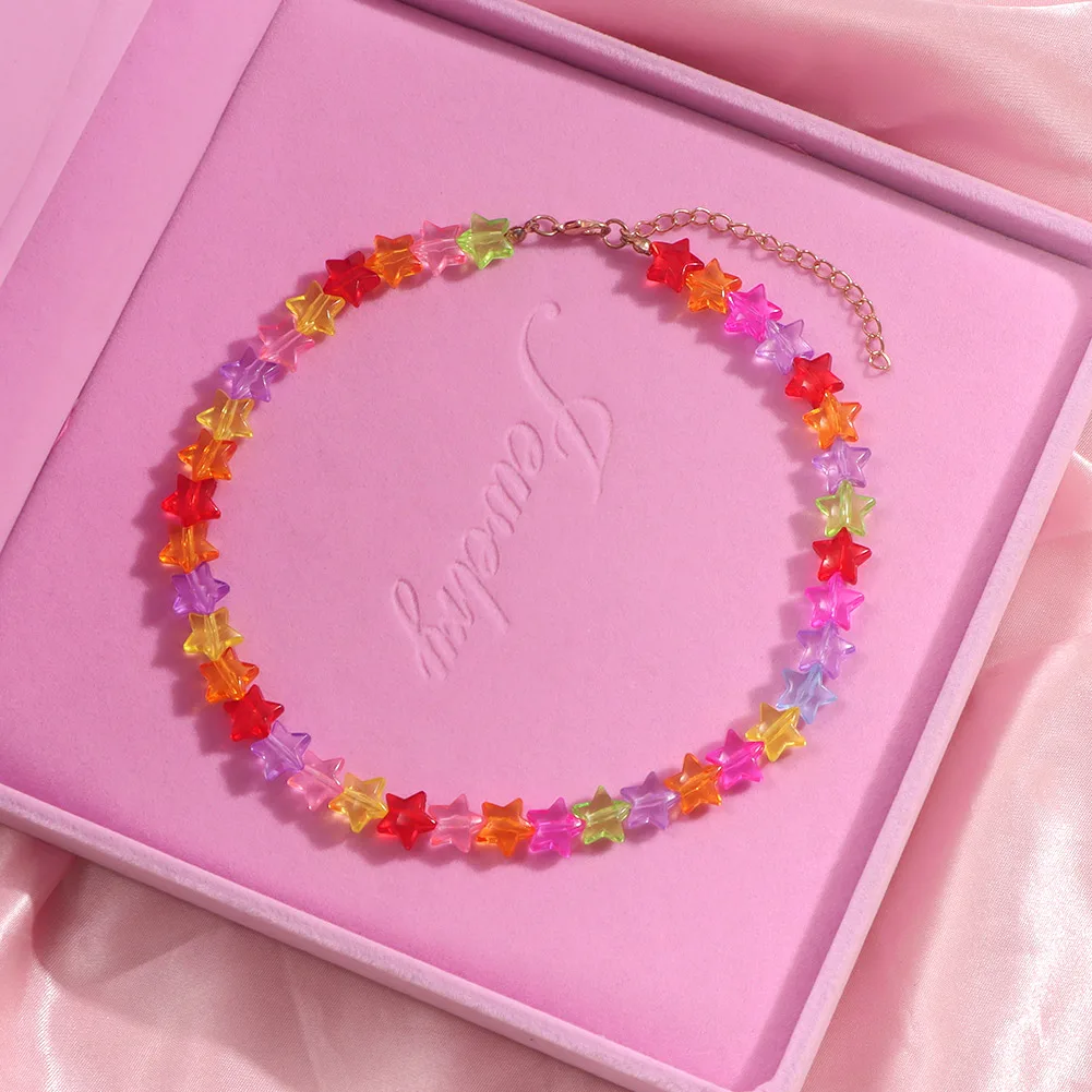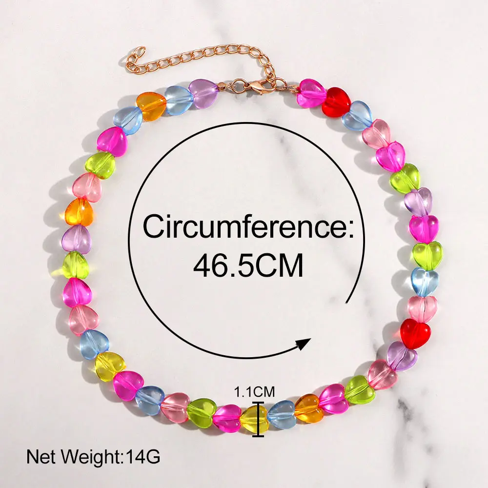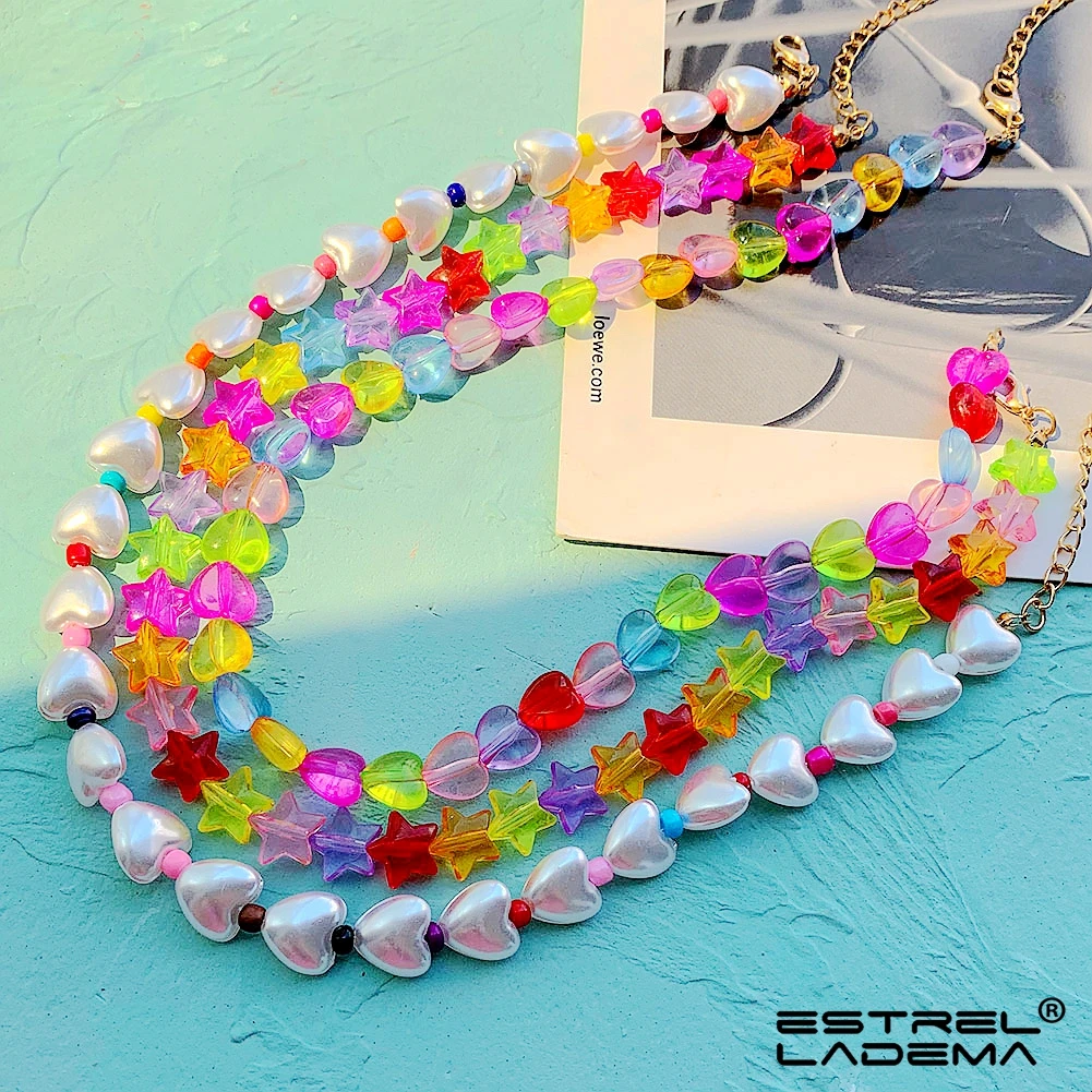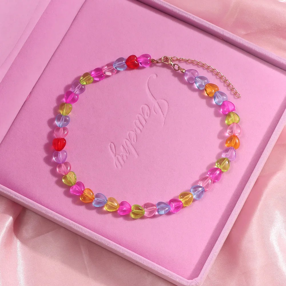 Женское Ожерелье-чокер ручной работы, ожерелье в богемном стиле с жемчужинами и сердечками карамельных цветов, с бусинами радужной звезды, из ниток, подарочное ювелирное изделие
