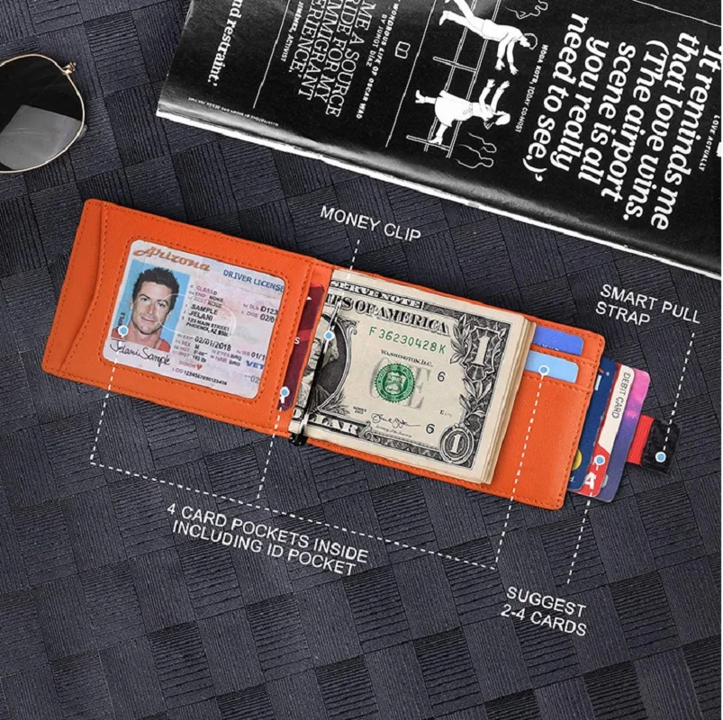 Кошелек с зажимом RFID, тонкий кошелек для денег, бумажник с блокир...