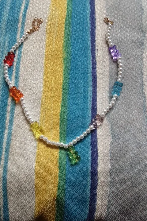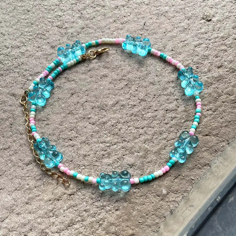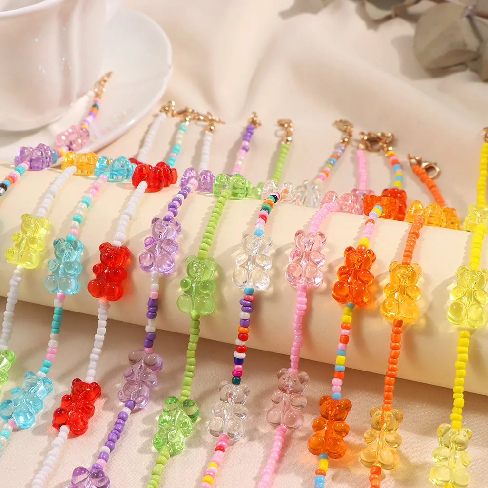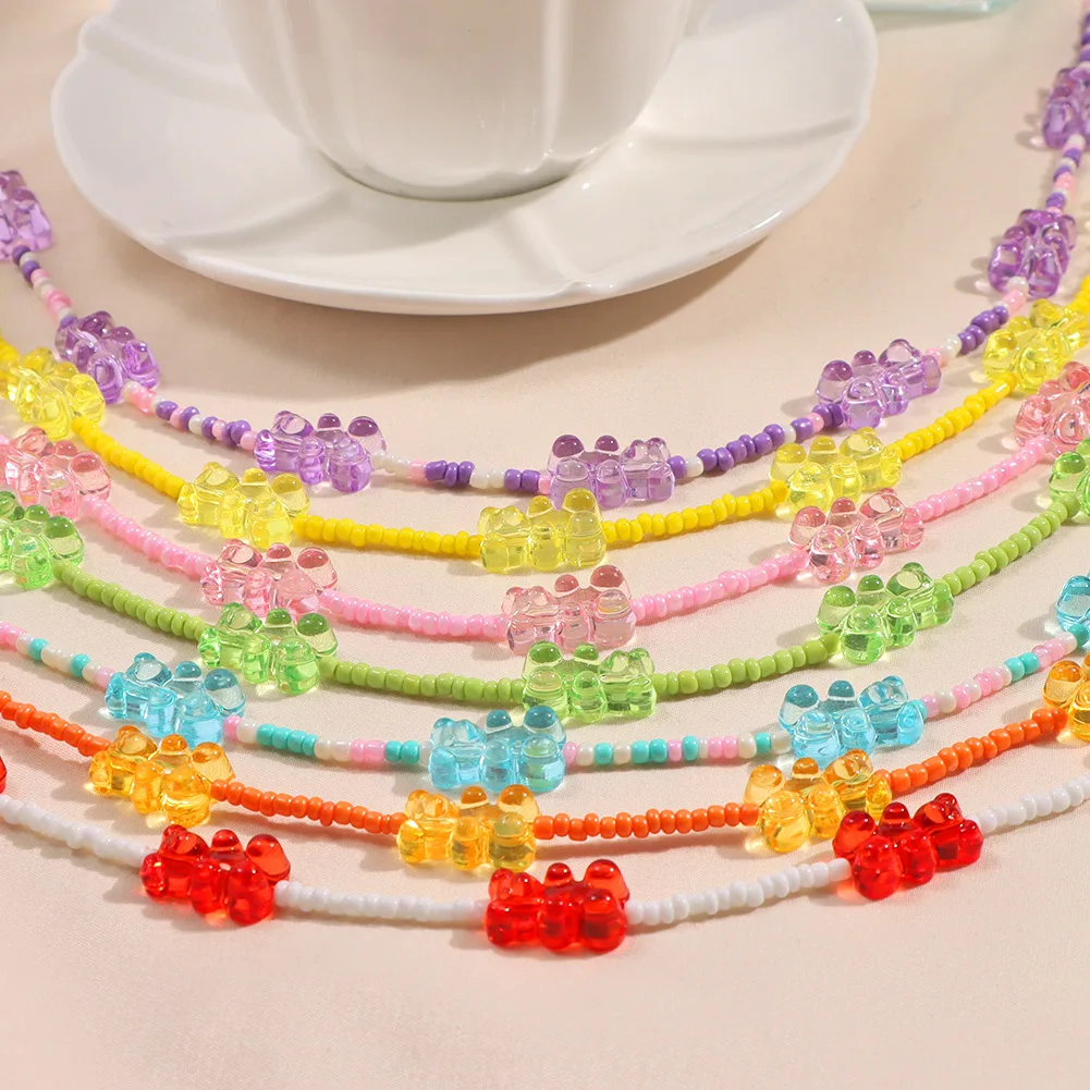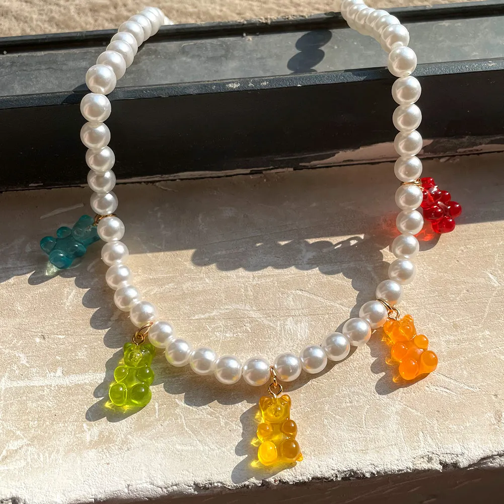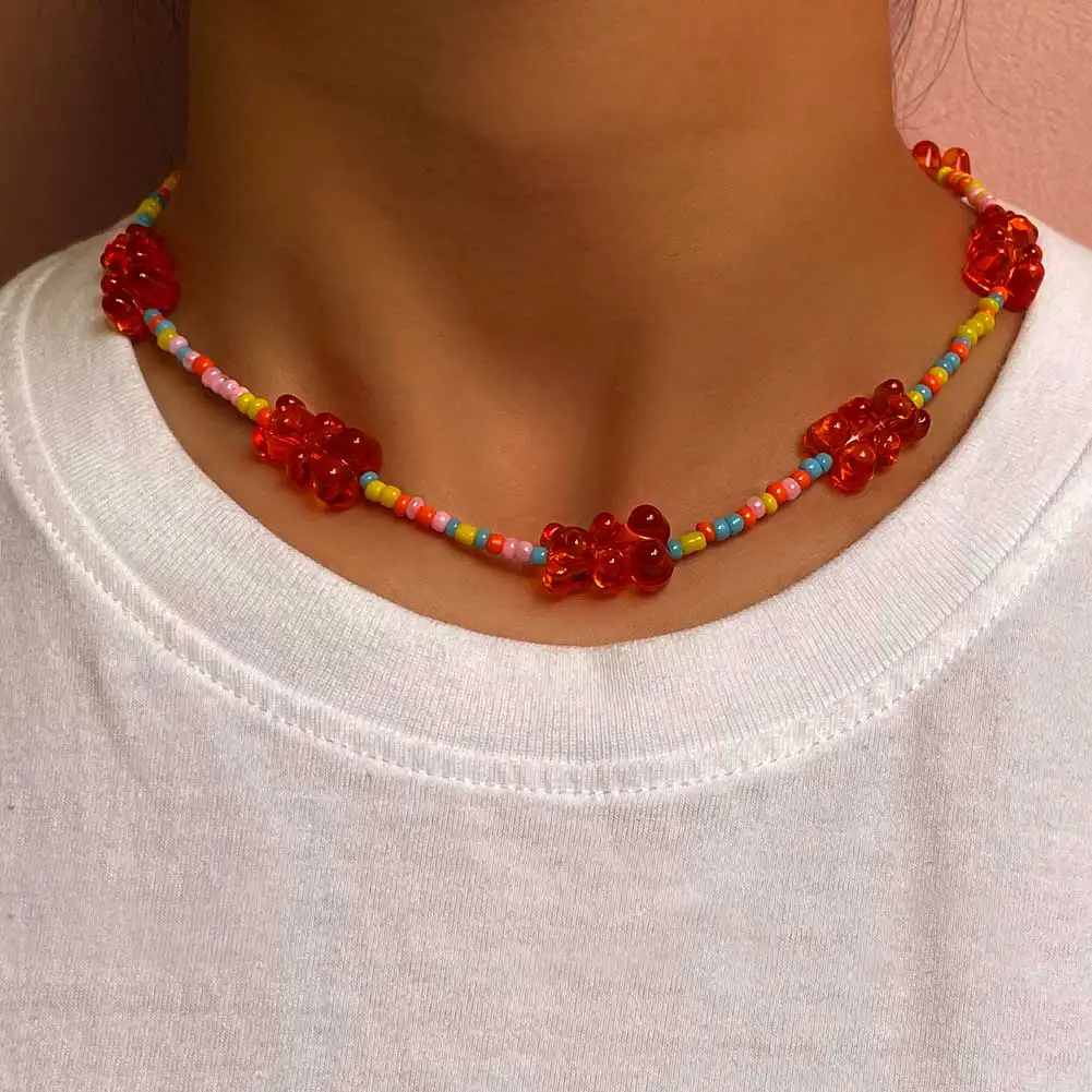 Ожерелье-чокер Y2k женское с жемчужными бусинами, цветной кулон в виде мишки-желе с бисером ручной работы, корейская бижутерия