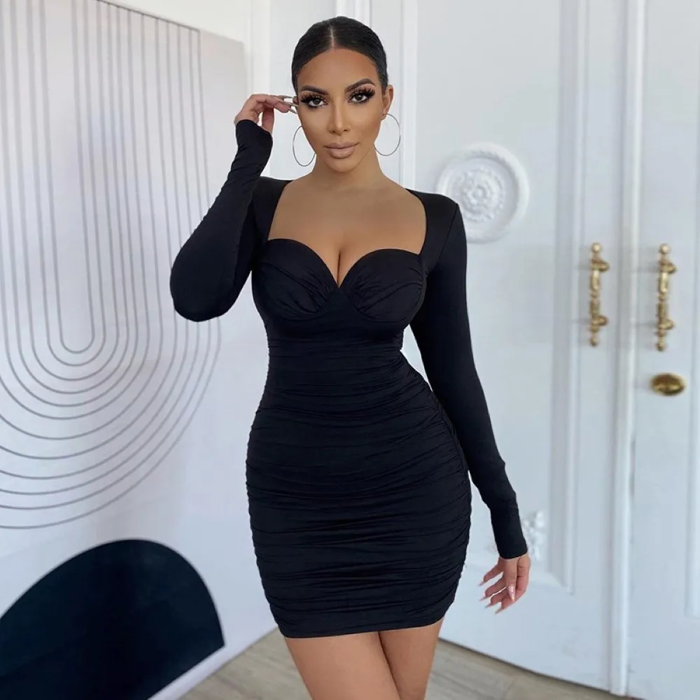 Y2K Элегантные мини-платья с длинным рукавом для женщин 2021 вечерн...