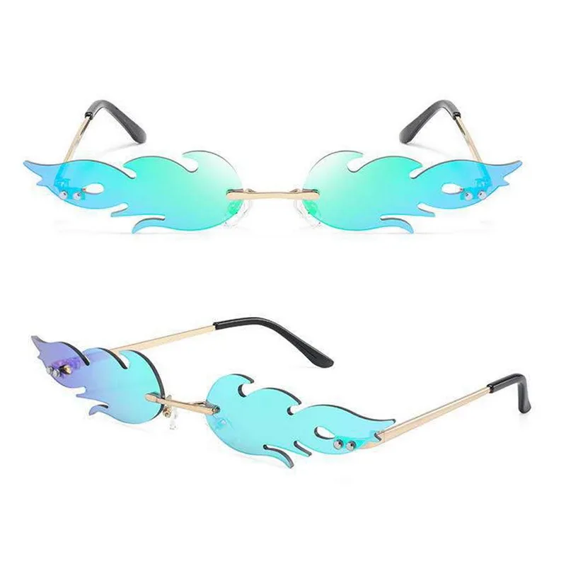 2021 модные огонь солнцезащитные очки волна без оправы Узкие Ретро ...