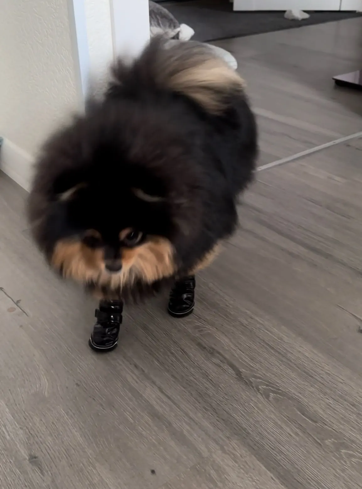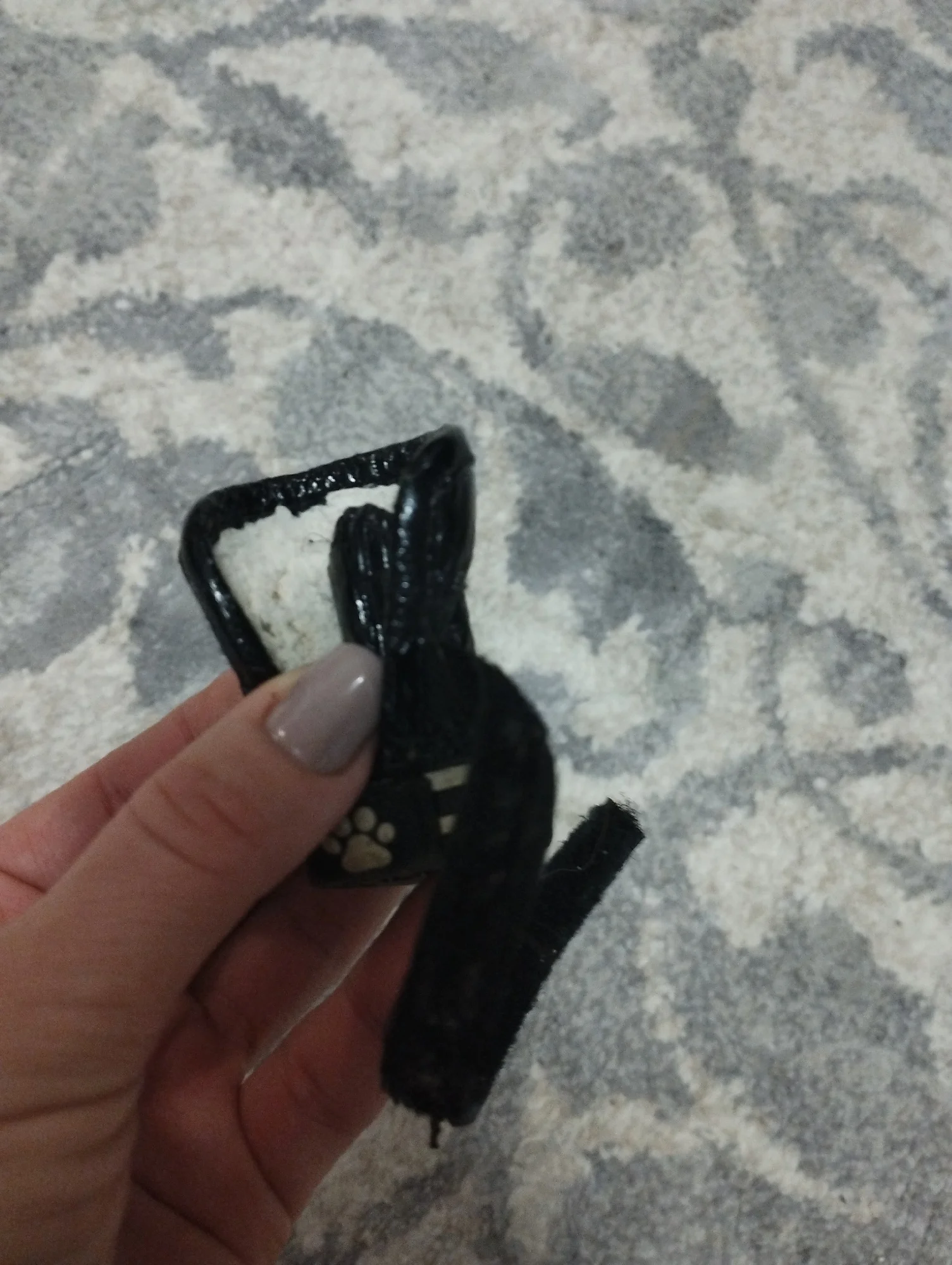 Ботиночки очень красивые и мягкие, на лапке держатся хорошо. Звезду сняла за то, что ОЧЕНЬ сильно воняет клеем. Поставила на балкон, надеюсь выветрится.