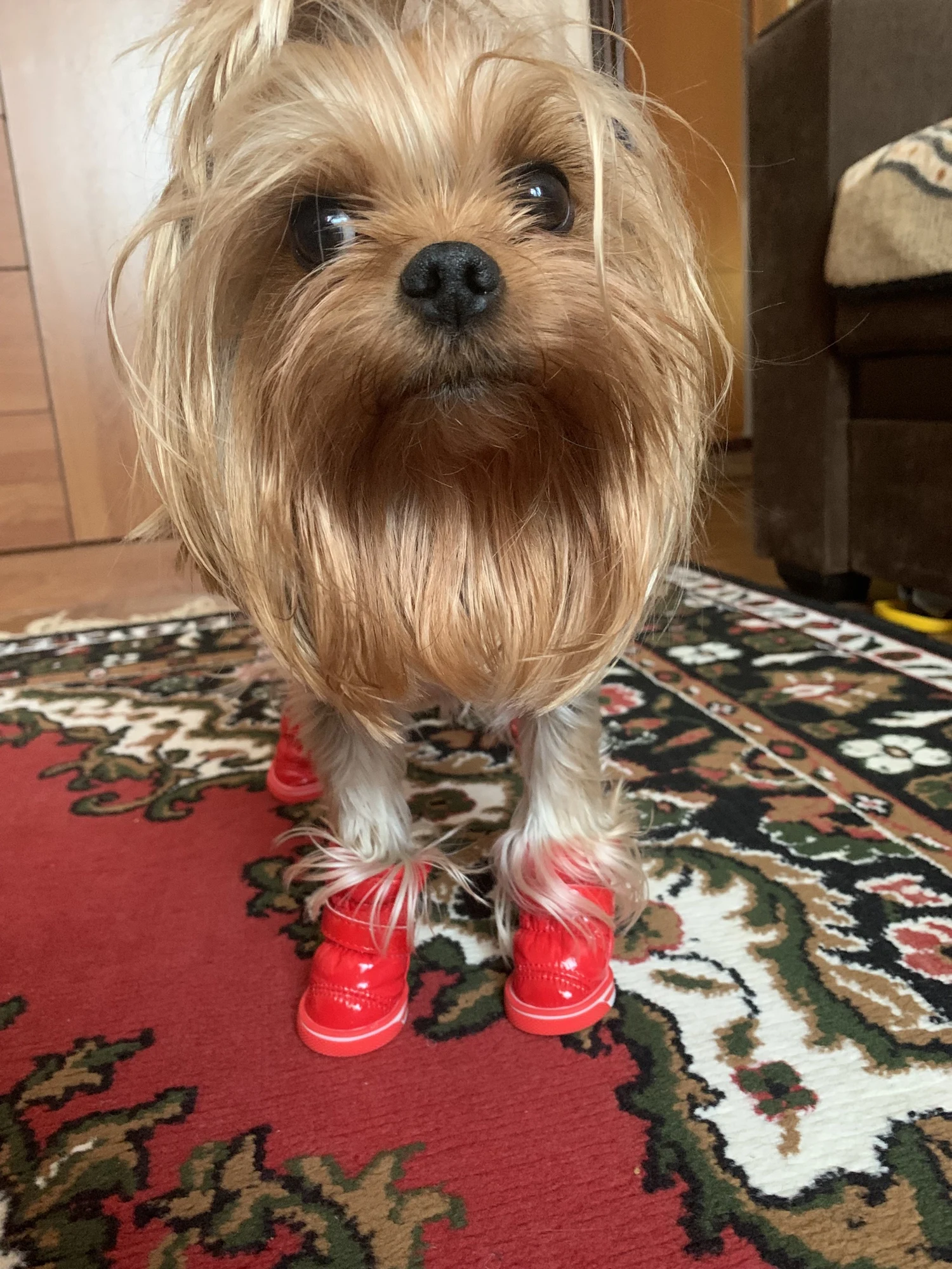 доставка быстрая, ботинки йорку 3,5 кг подошли, упакованы хорошо — внутри вложен синтепон