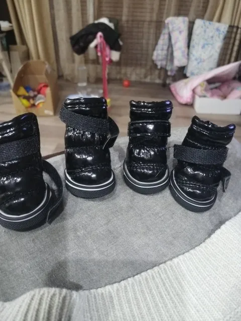 Спасибо продавцу за быструю доставку, на 12 дней раньше. Ботинки хорошо сшиты. На лапках сидят хорошо, моей собачки нравятся. Той пудель, 3кг,заказала размер 2,но мне кажется, что это 3,хотя размер написан на подошве 2. Внутри ботинок написан на одних 2размер, на других 3.По подошве одинаковые. Я не расстроилась, приклею тепленькую стельку. Хорошая обувь, после нескольких прогулок добавлю отзыв.