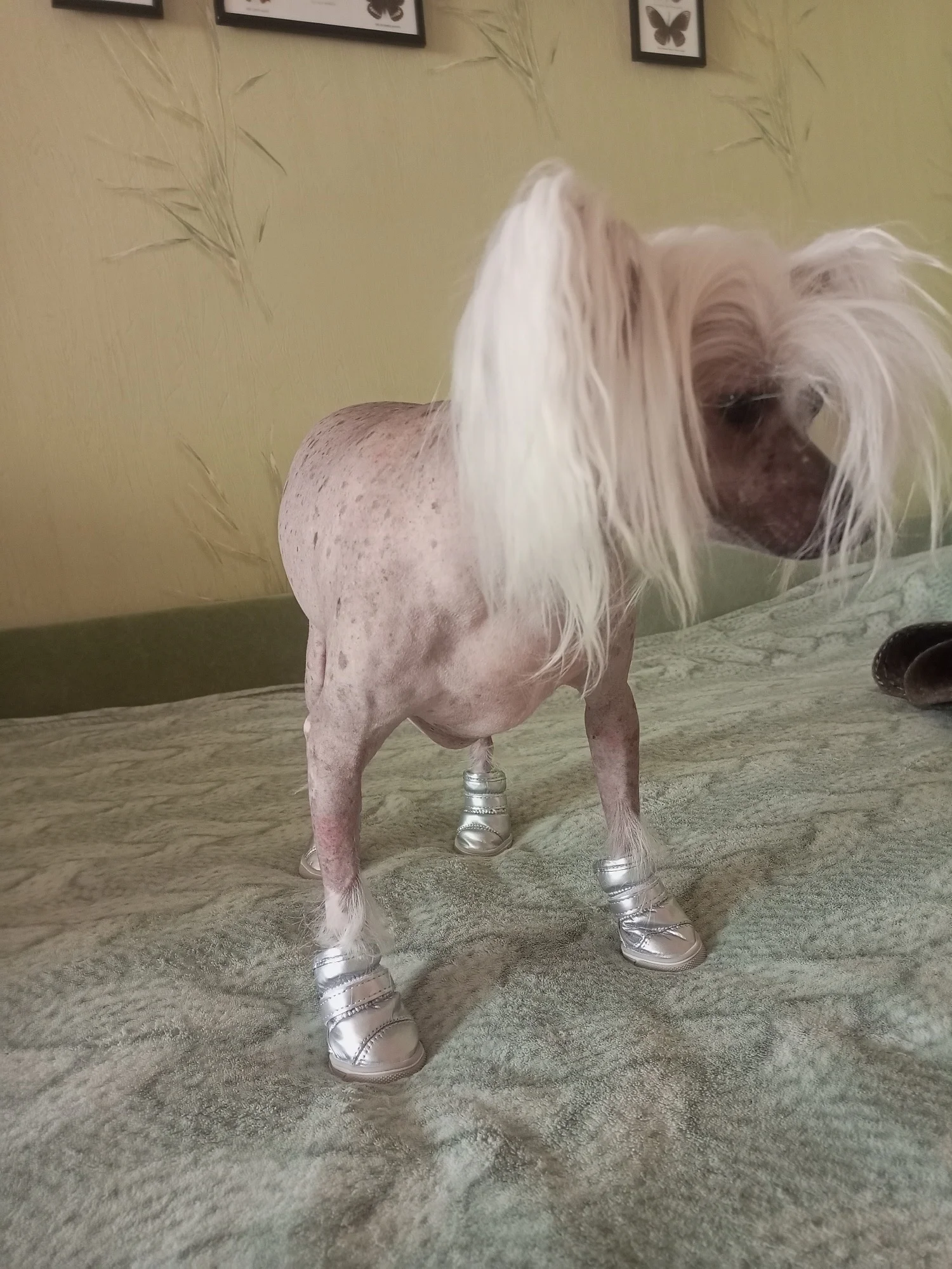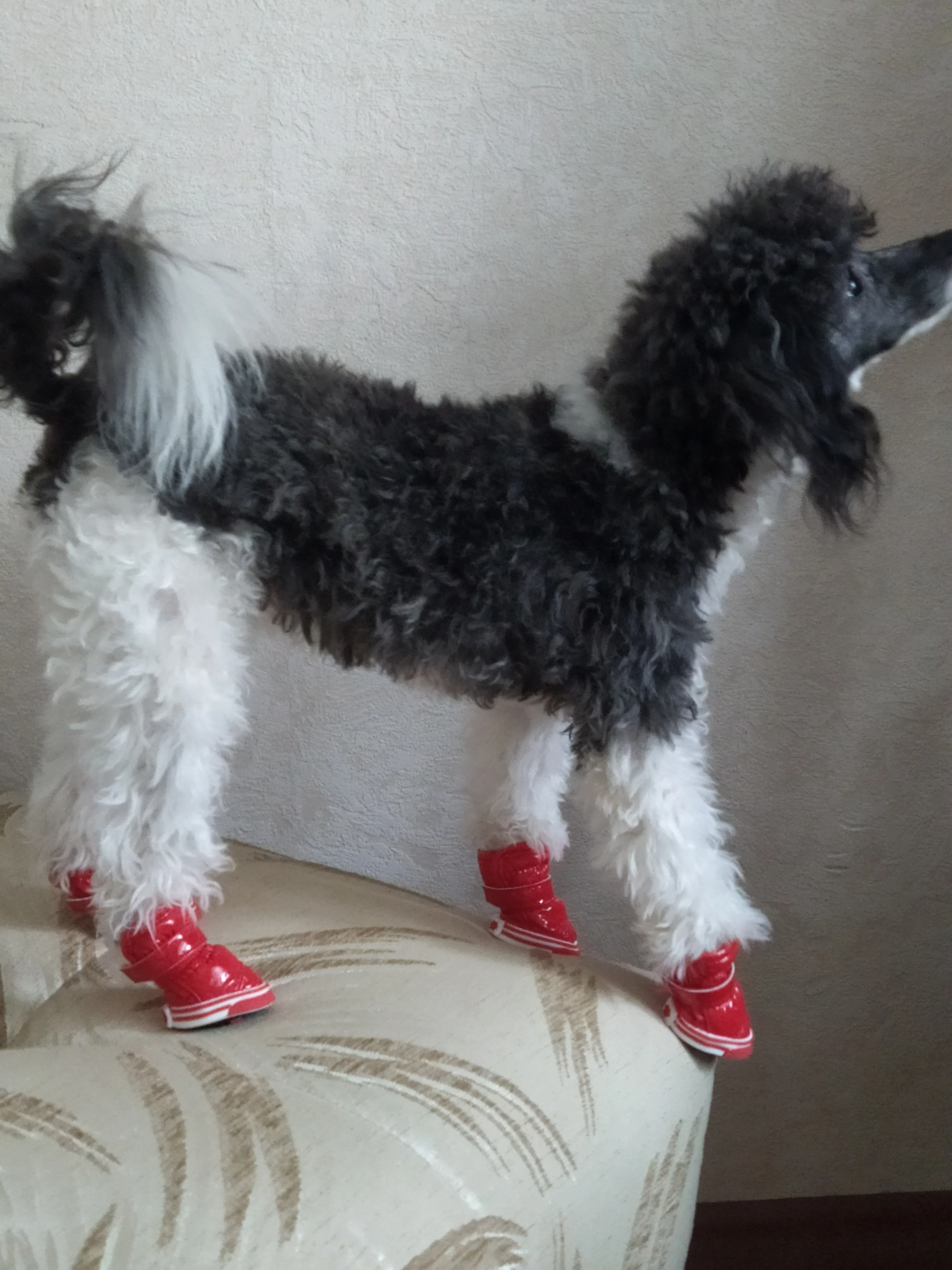 Обувь хорошая, соответствует описанию. Размер 1 подошёл на китайскую хохлатую отлично. Это уже вторая наша пара. единственный неудобный момент- липучек начали пришивать с левой стороны и оборот вокруг лапки делается влево. Получается, чтобы хорошо зажать, надо крепко фиксировать руками. На последнем фото - обувь с того года, липучка пришита с правой стороны.