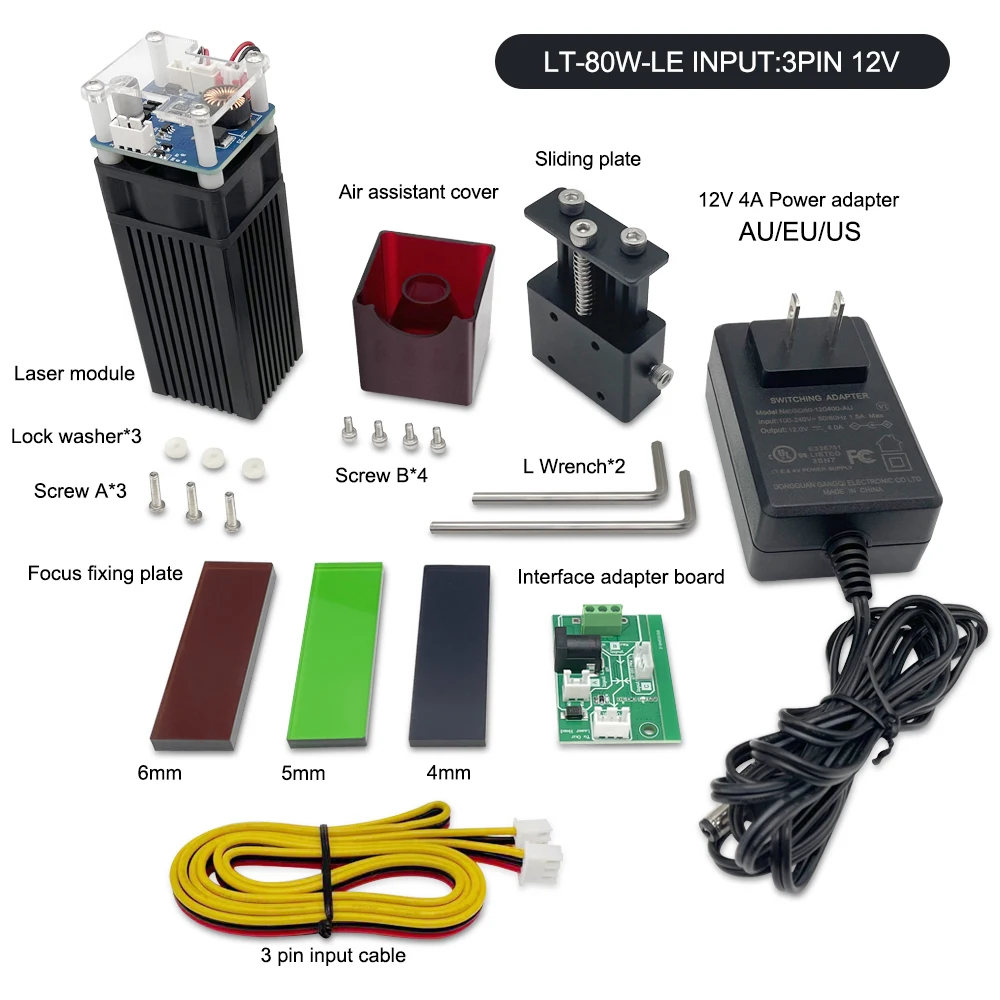 Лазерная головка с фиксированным фокусом, подходит для трехосевой гравировальной машины, легко устанавливается.
