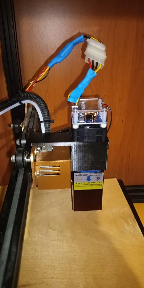 Прекрасный лазер с отличными качествами. Брал для 3D принтера на 24в. Подключение достаточно адаптивное. Попутно консультировал продавец, спасибо ему за это. Очень общительный и все по факту. До этого опыт владения на 40вт был. Так вот этот реально мощнее, гораздо. Подключил его для принтера тево торнадо. Питание непосредственно подключил к питанию платы (не от питания вентилятора) попутно припаяв в схему питания выключатель. Pwm кабель припаял к лапке чипа управления мощностью обдува вентилятора, провод минуса pwm подключения к минусу питания гравера. Все работает как нужно и регулировка мощности осуществляется полностью. Гравировки проверял на зеркале, дереве, метале с покрытием. Кстати на этом же принтере распечатал крепёж для гравера. Плюс сделал быстросъёмный коннектор для подключения