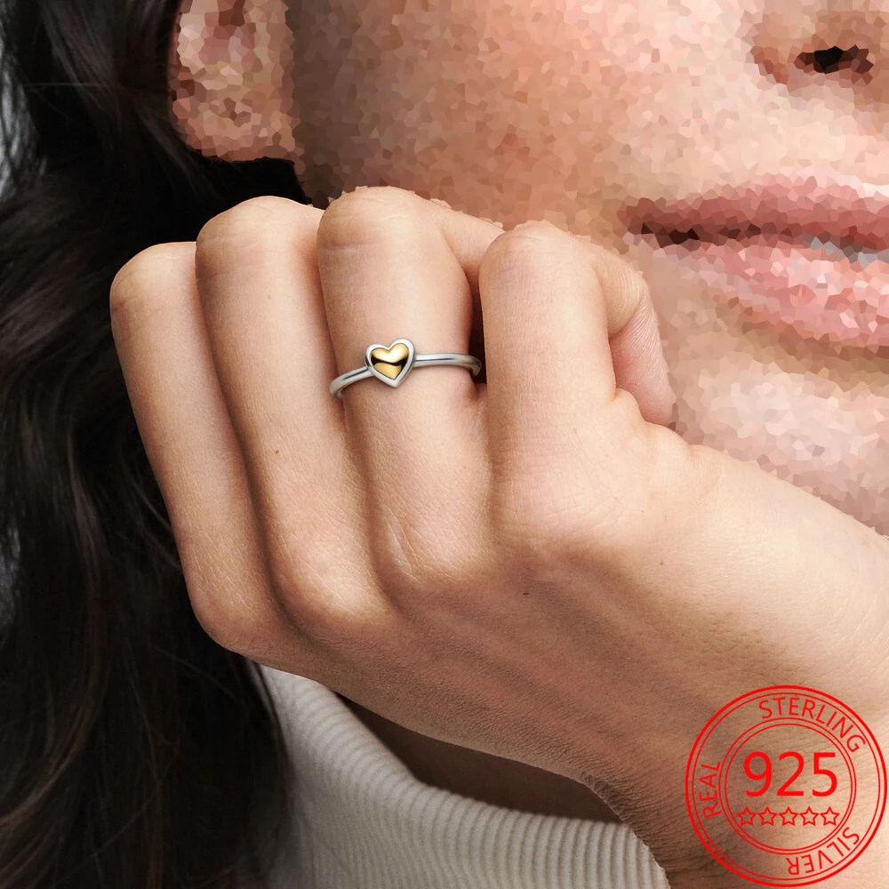 Классическое кольцо из стерлингового серебра 925 пробы, купольное Золотое кольцо в форме сердца, обручальное кольцо, женские массивные модные ювелирные изделия