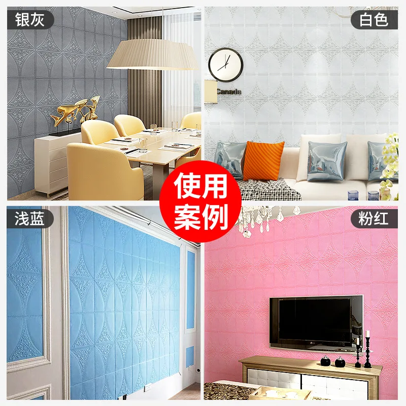 По сравнению с обоями, это безопасный, экологически чистый, нетоксичный и безвкусный, мягкий материал, 3D-эффект, сделай сам, самоклеящийся, простой в установке, случайный коллаж и произвольная резка. Он обладает лучшим шумоподавлением, звукоизоляцией, защитой от столкновений, легкой чисткой, влагостойкими и стойкими к плесени эффектами.