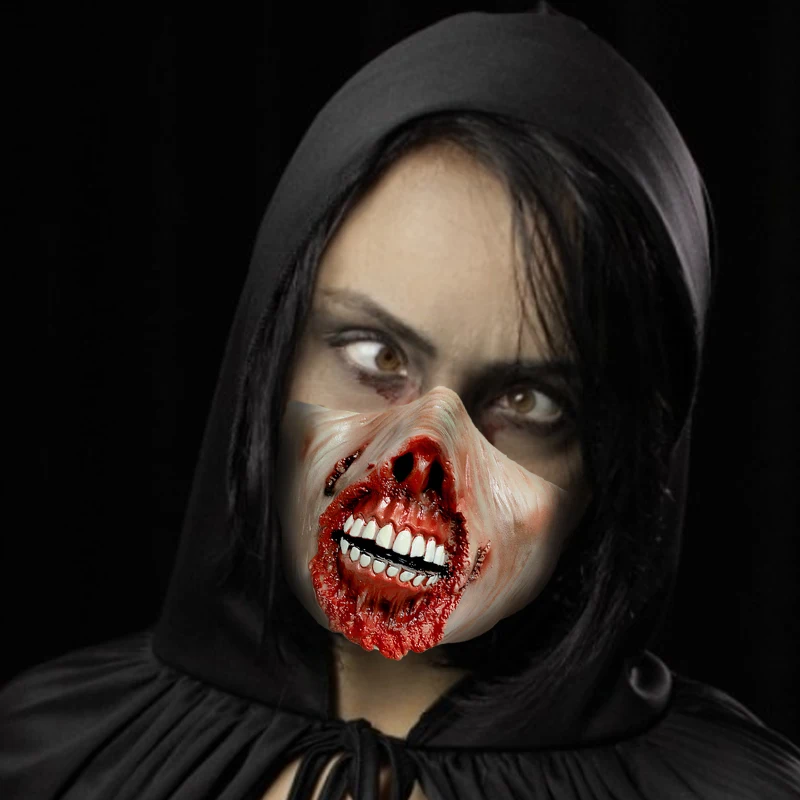 Новинка 2021, страшная маска на Хэллоуин, страшная маска на половину лица, латексная маска, украшение для Хэллоуина, товары для косплея на Хэллоуин