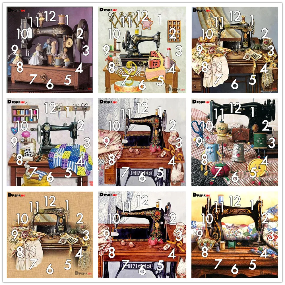 Dpsprue полностью алмазная живопись, вышивка крестиком, швейная машина с часовым механизмом, мозаика 5D, сделай сам, квадратная, круглая, 3d вышивка, подарок