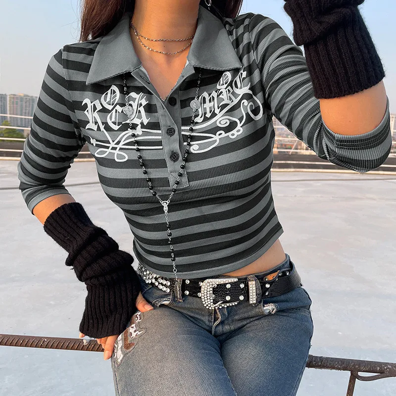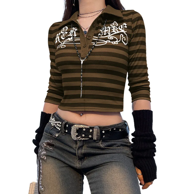 Женская футболка в полоску, с коротким рукавом, пупком и воротником с лацканами