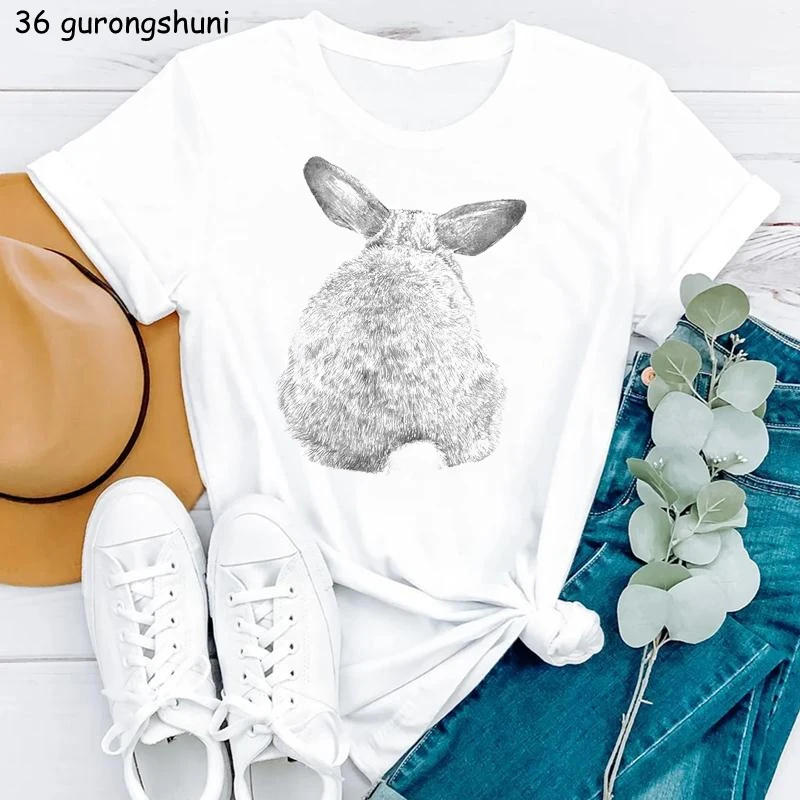 Забавные розовые футболки, женская футболка с изображением кролика,...