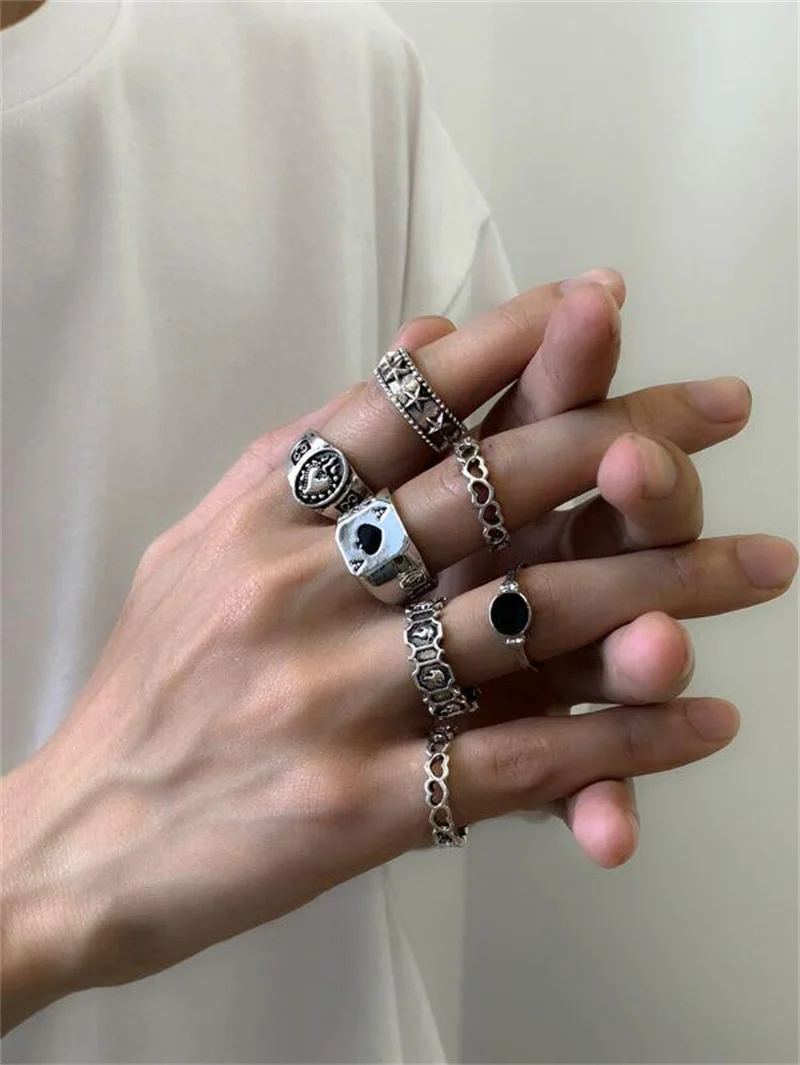 Набор колец для женщин, в стиле панк, в готическом и винтажном стиле