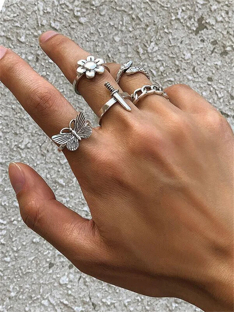Набор колец в стиле панк с цветами и бабочками для женщин, винтажны...