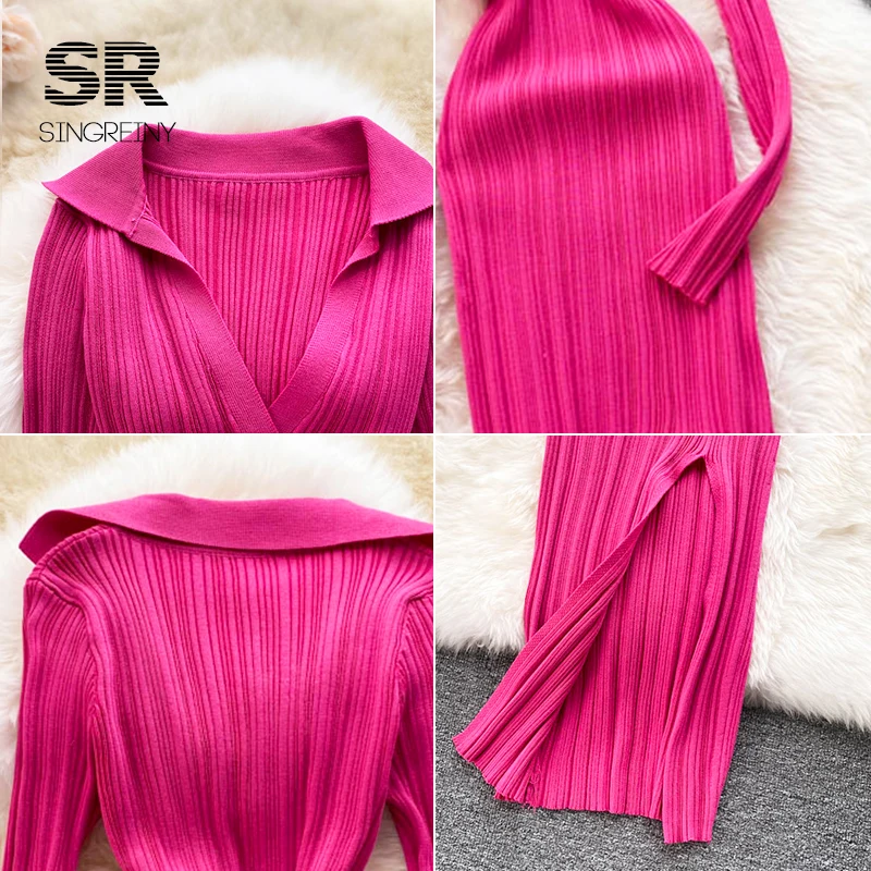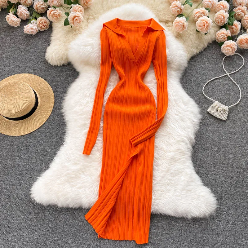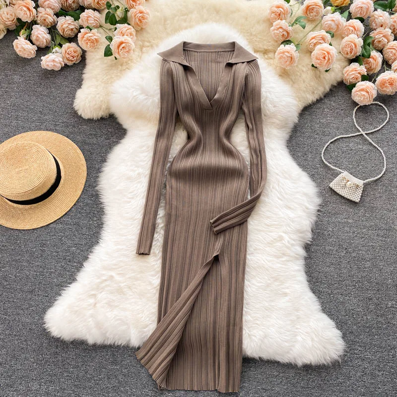 Трикотажное платье-свитер с длинным рукавом, средней длины