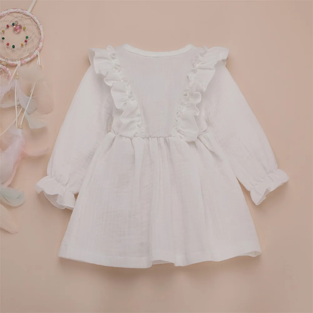 Женское платье принцессы, одежда для маленьких девочек, однотонное платье с длинным рукавом, платья из хлопка и льна
