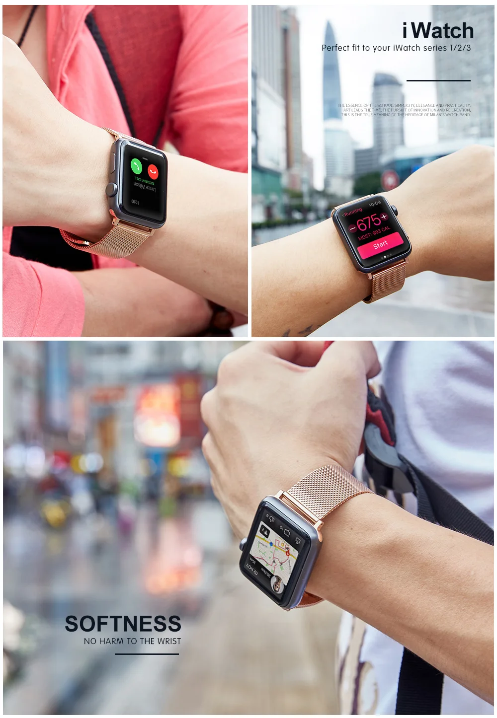 Ремешок Миланская петля для apple watch series 44 мм 40 мм, спортивный браслет из нержавеющей стали для Iwatch 6 5 4 38 мм 42 мм с инструментом