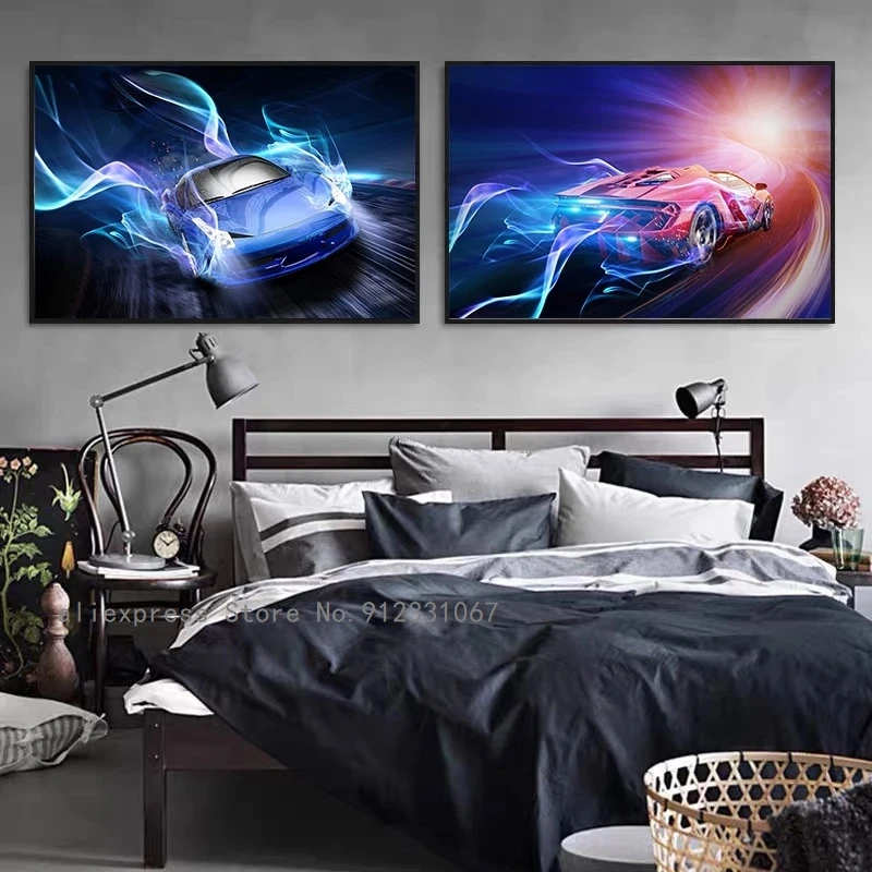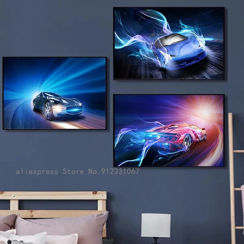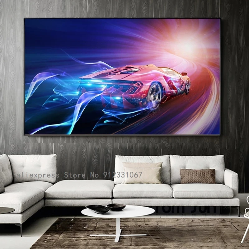 Абстрактная красочная Картина на холсте с изображением гоночного автомобиля, классные постеры и принты спортивных автомобилей, настенные художественные картины, украшение для гостиной