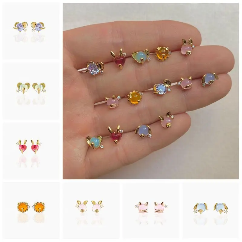 Серьги MC Ins из циркония, простые милые красочные серьги с медным покрытием в виде животных для женщин и девушек, корейские ювелирные изделия для пирсинга