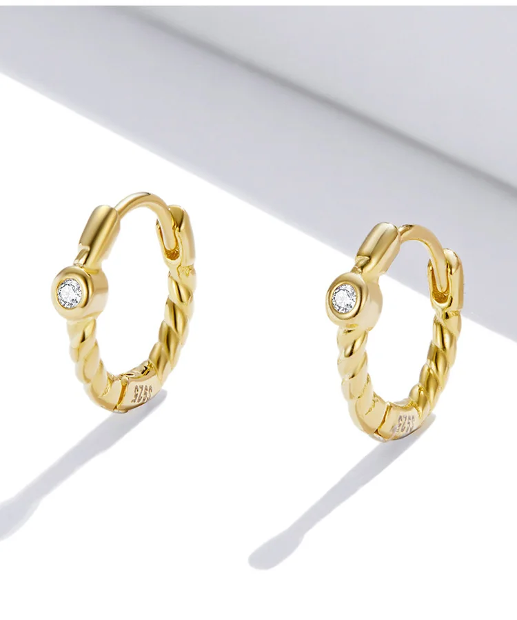 Серьги-гвоздики женские спиральные из серебра 925 пробы с фианитами, CQE1255