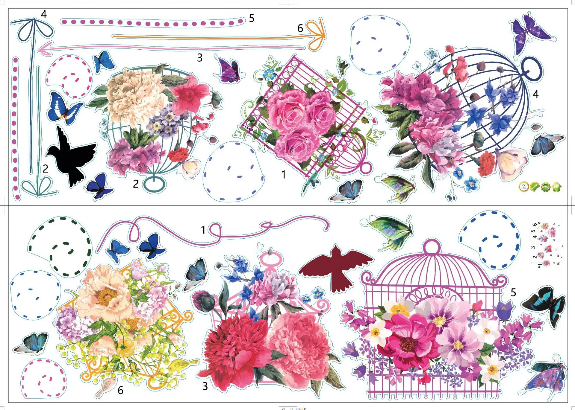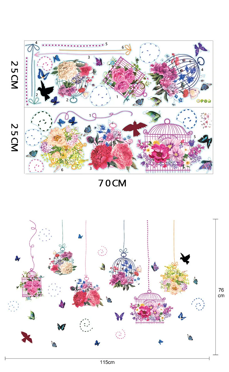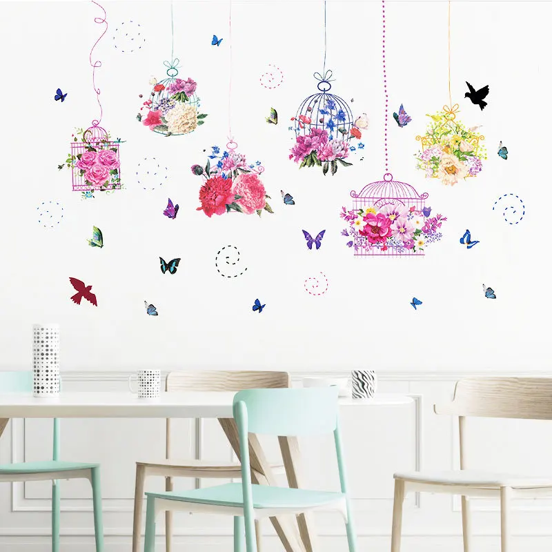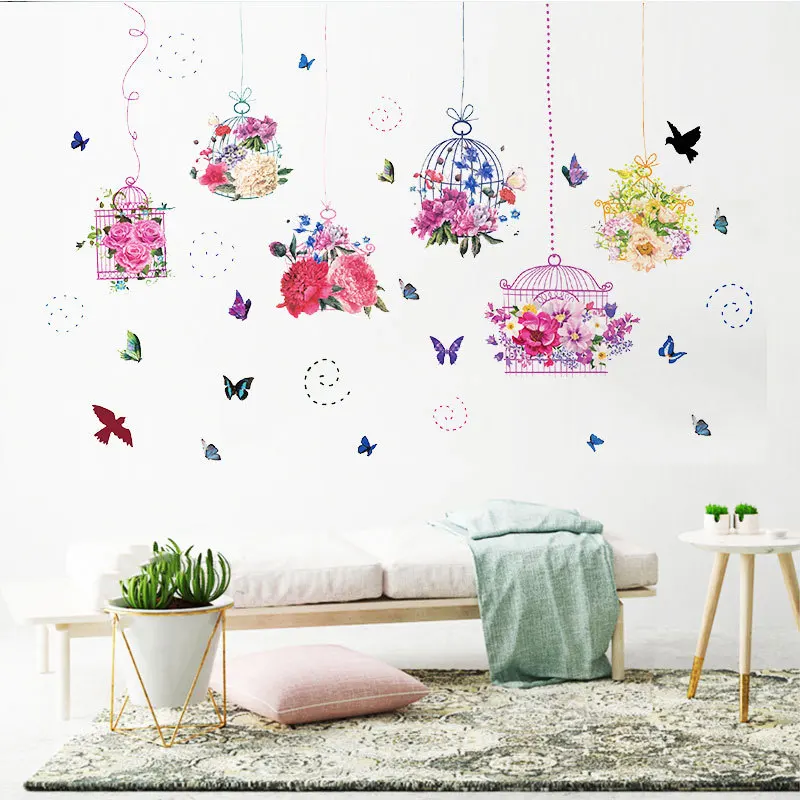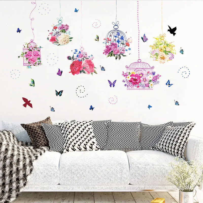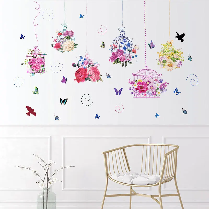 Наклейка на стену в виде бабочки, цветка, птицы, клетки