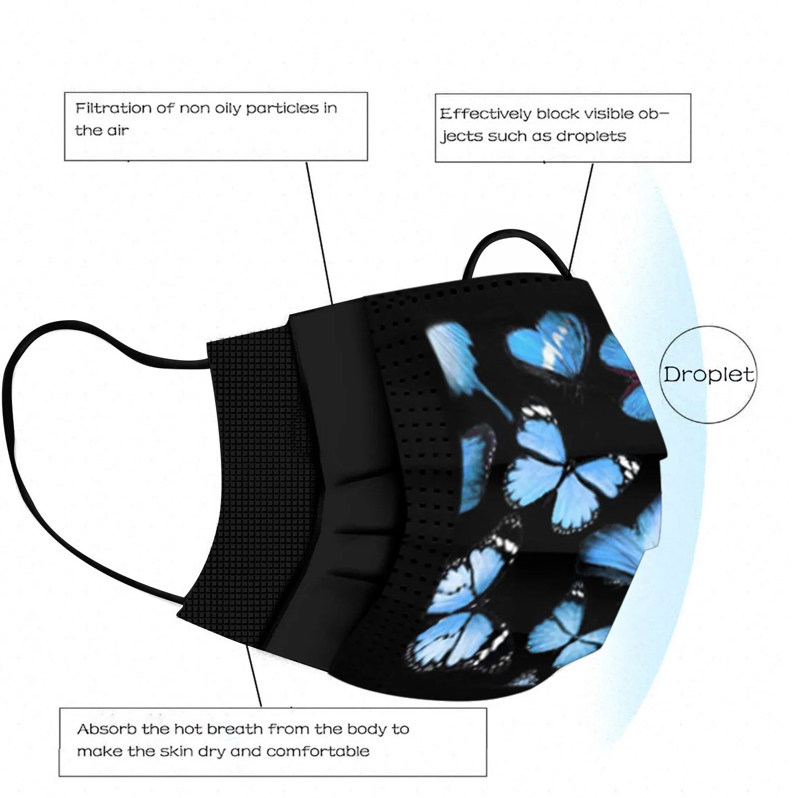 Маска для лица одноразовая трехслойная С Рисунком бабочки, 10 шт.