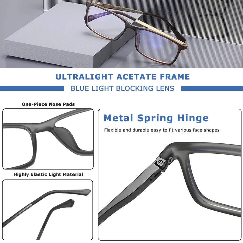 Очки CRIXALIS мужские с защитой от синего света, винтажные прямоугольные аксессуары для чтения, рецептурные прозрачные, с пружинными петлями