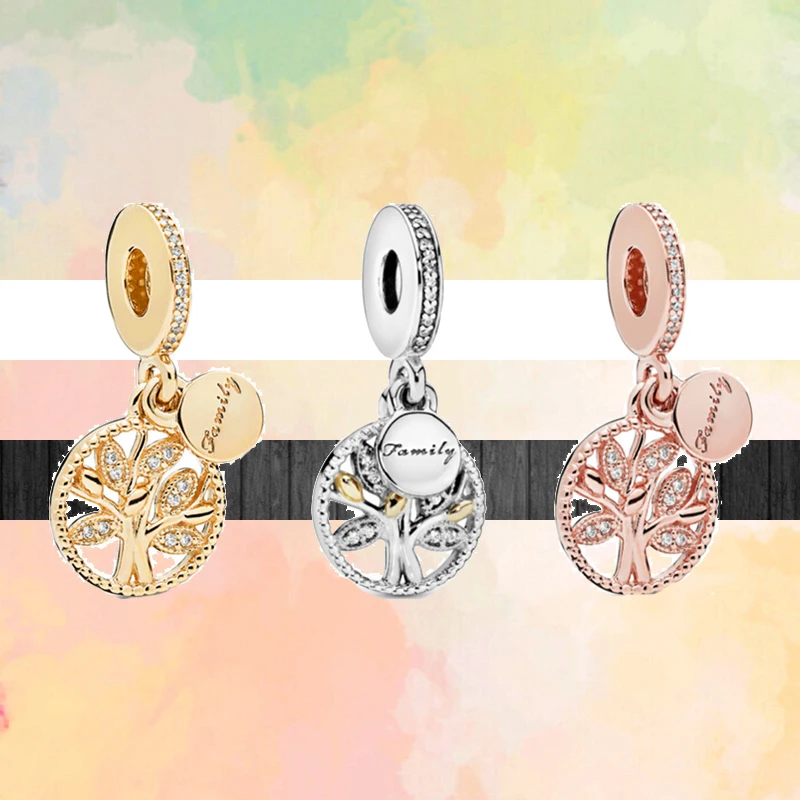 Новые Полые бусины-подвески с изображением семейного дерева золотого и серебряного цвета розового золота подходят для оригинальных браслетов Pandora с шармами и браслетов женские ювелирные изделия сделай сам