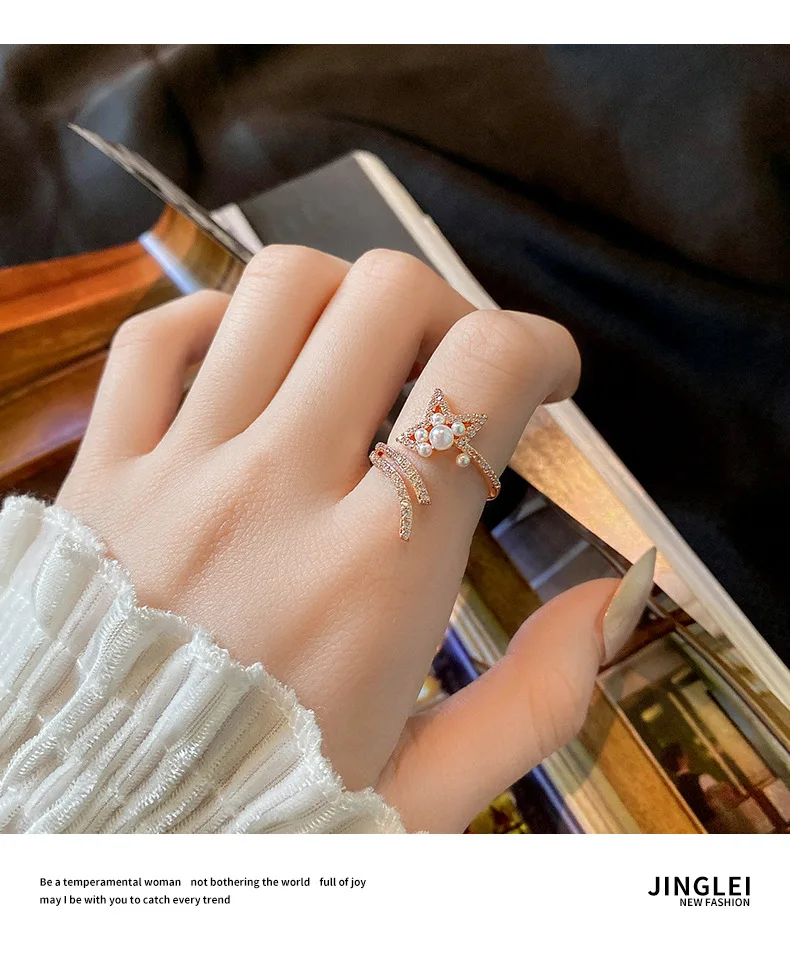 Женское кольцо с цирконом, Открытое кольцо с микро-комплектом, коре...