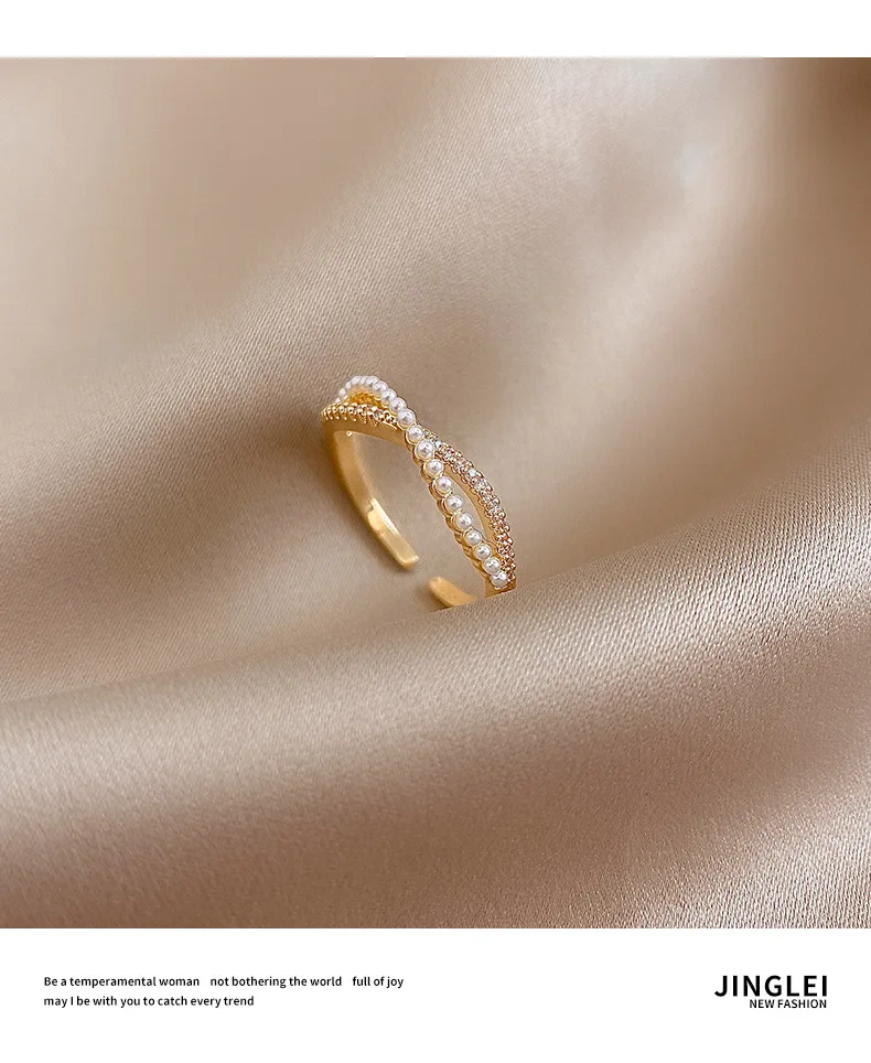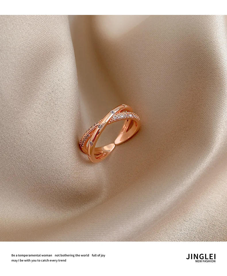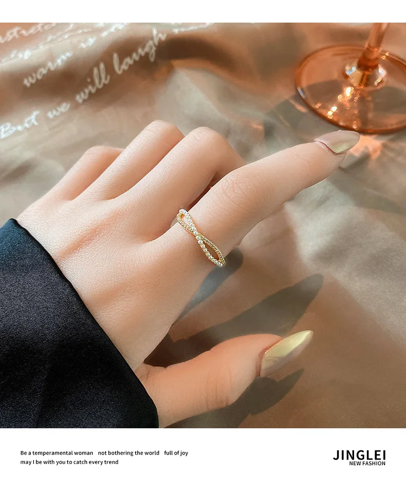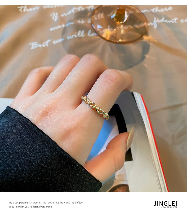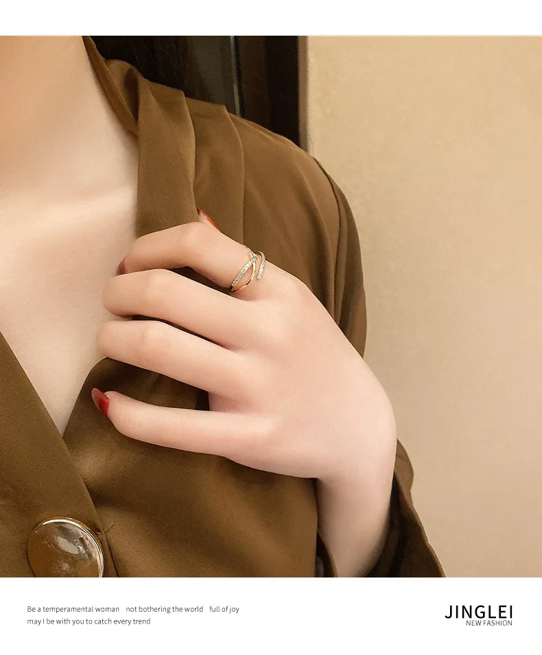 Открытые Кольца в форме двойной волны с цирконием для женщин, дизай...