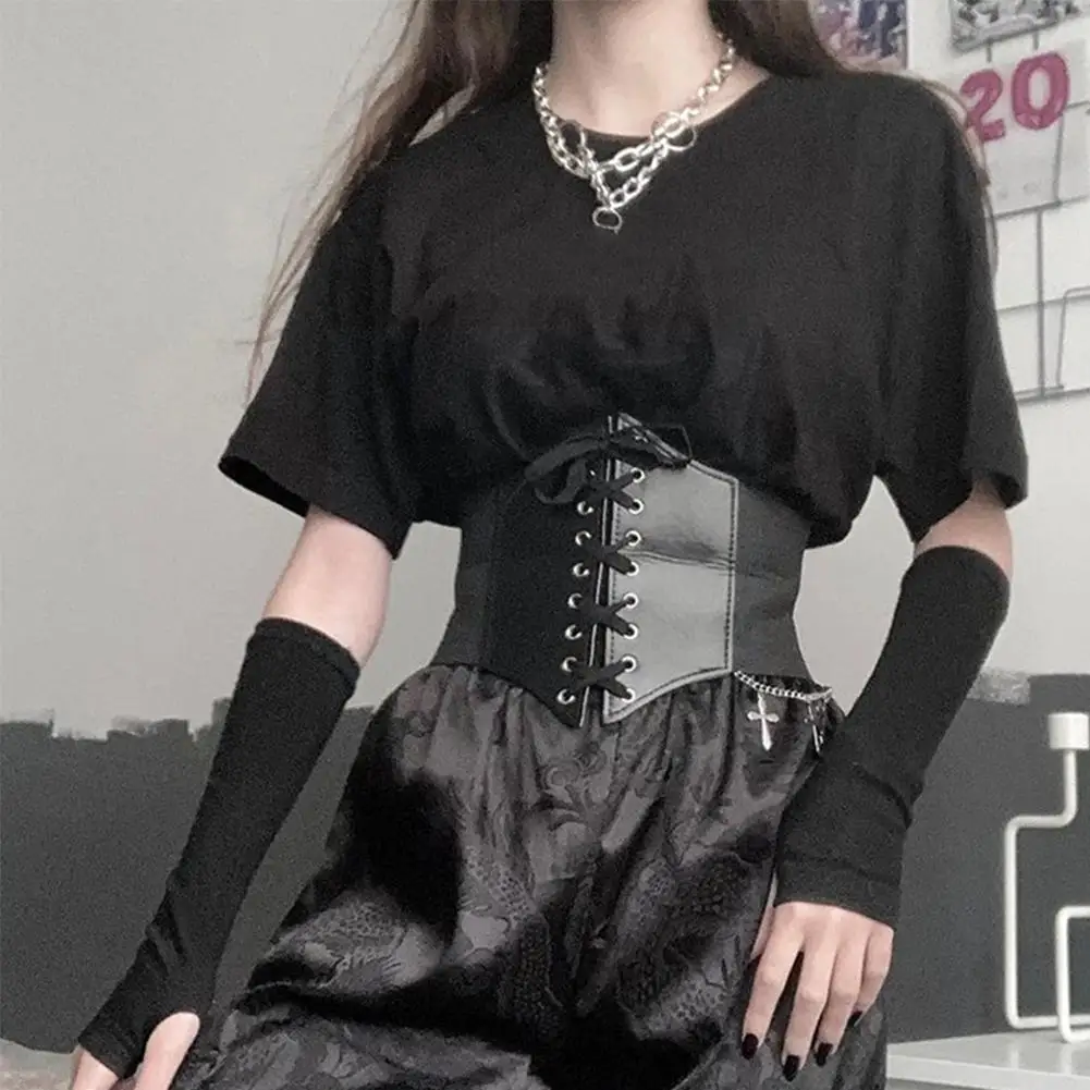 Корсет широкий Женский на шнуровке, укороченный топ из искусственной кожи, утягивающий пояс, топ, ремни, боди-бюстье, эластичный пояс с высокой талией для N7Q8
