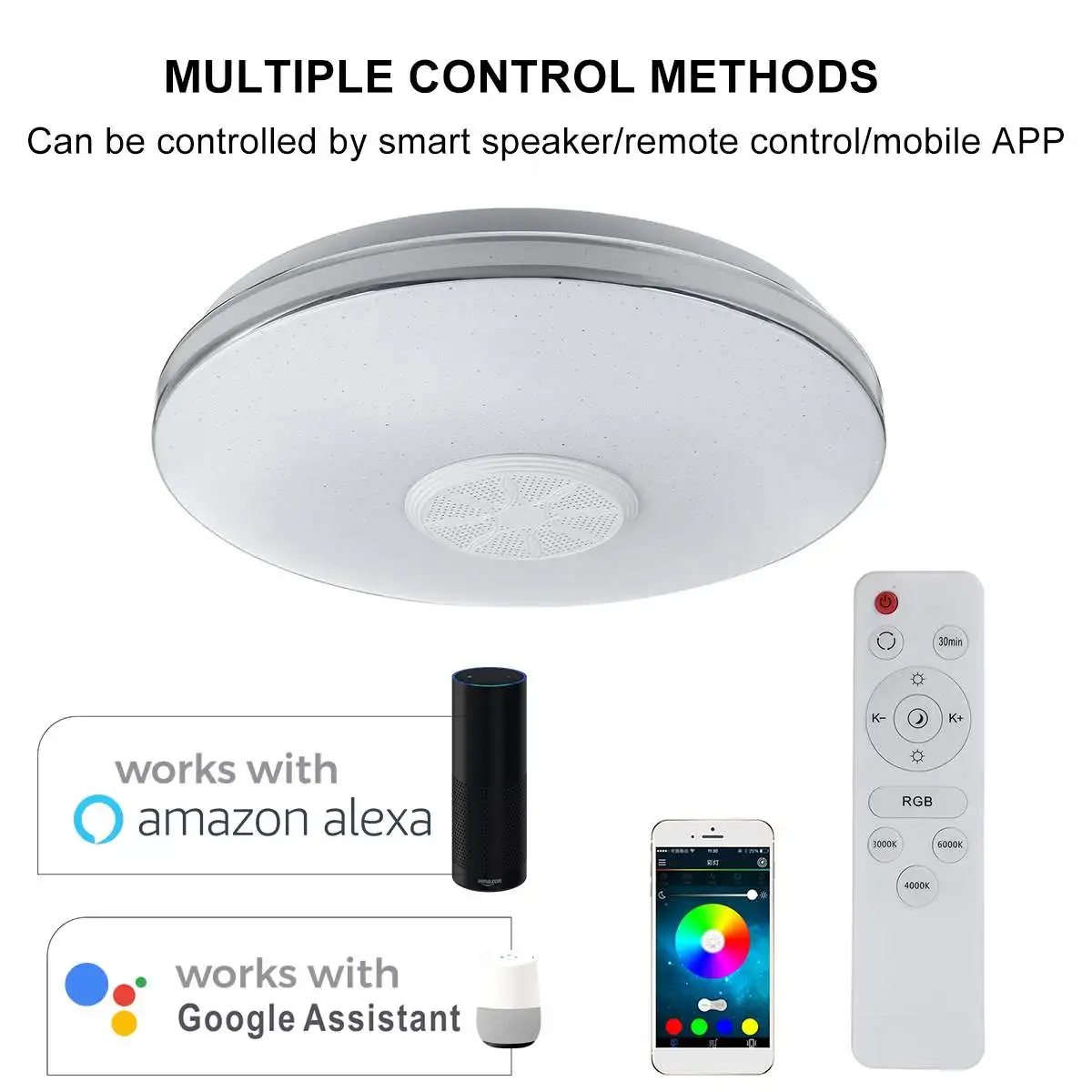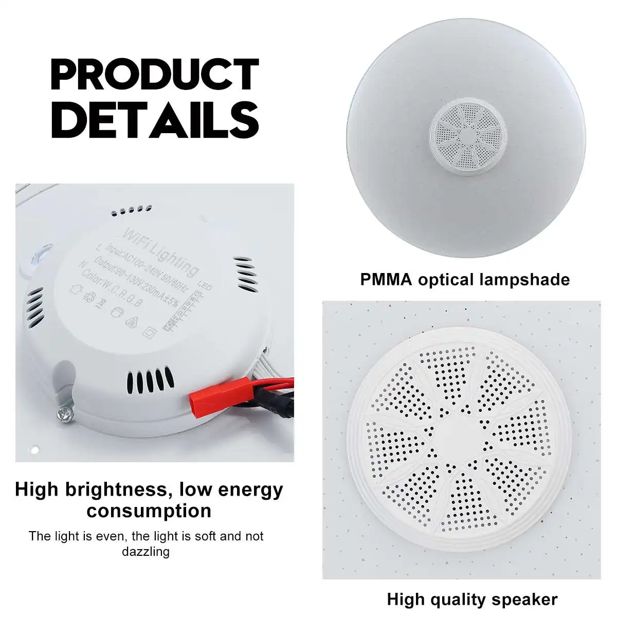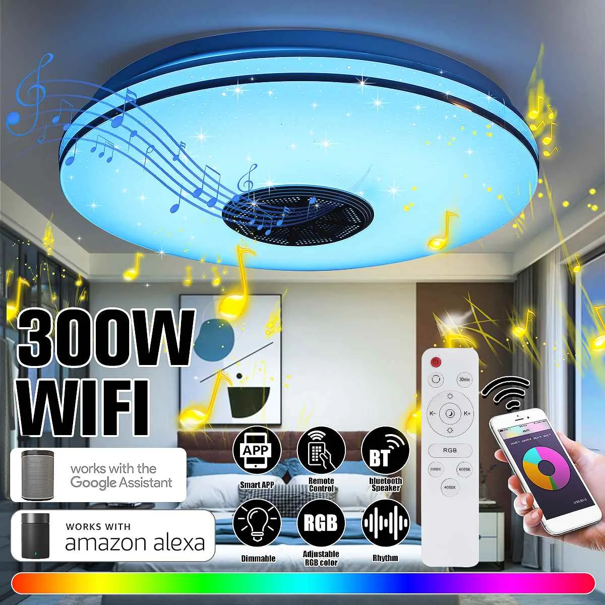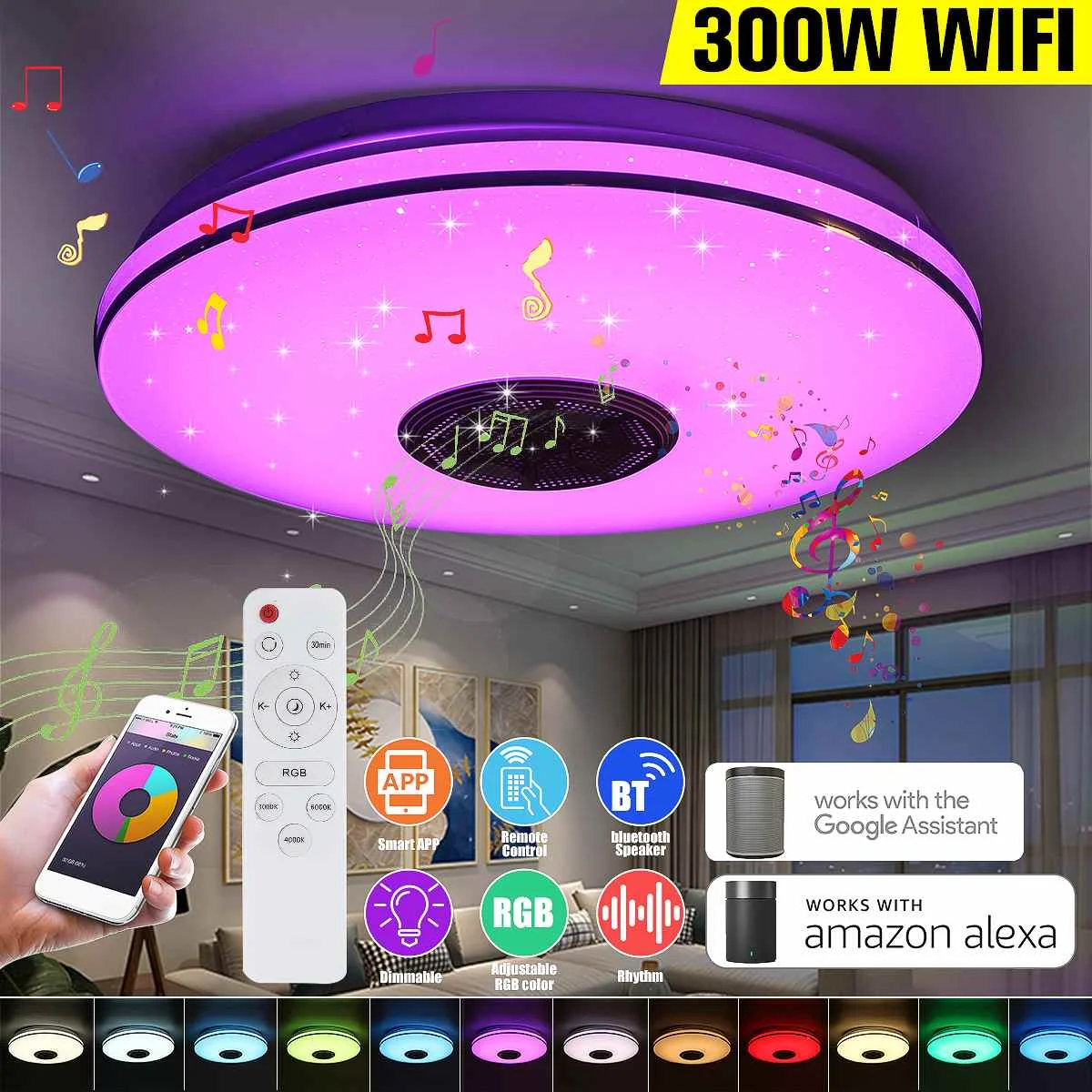 Светодиодный потолочный светильник 300 Вт, Wi-Fi, RGB, с регулируемой яркостью, освещение для дома, музыкальный светильник с приложением и динамиком bluetooth, умный потолочный светильник с пультом дистанционного управления