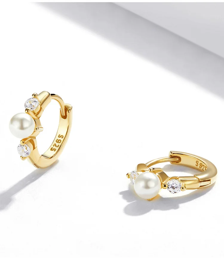 Женские серьги-гвоздики из серебра 925 пробы, с жемчугом