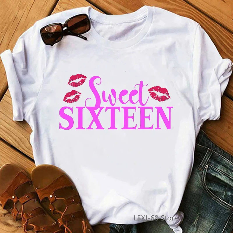 Футболка женская Повседневная в стиле Харадзюку, милая рубашка с принтом королевы сладких 16 подарков на день рождения, белая