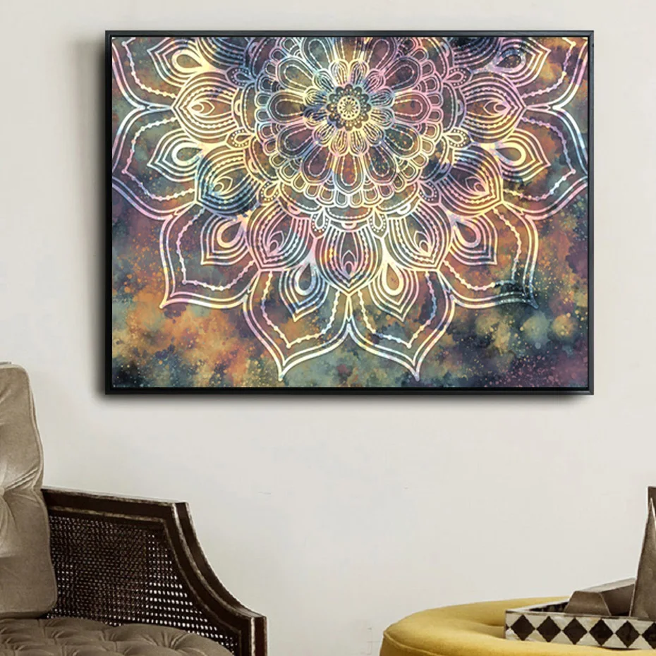 Абстрактное искусство мандала, Йога, акварель, звездная туманность, искусство, холст, живопись, плакат, печать, обучение, спальня, украшение для дома