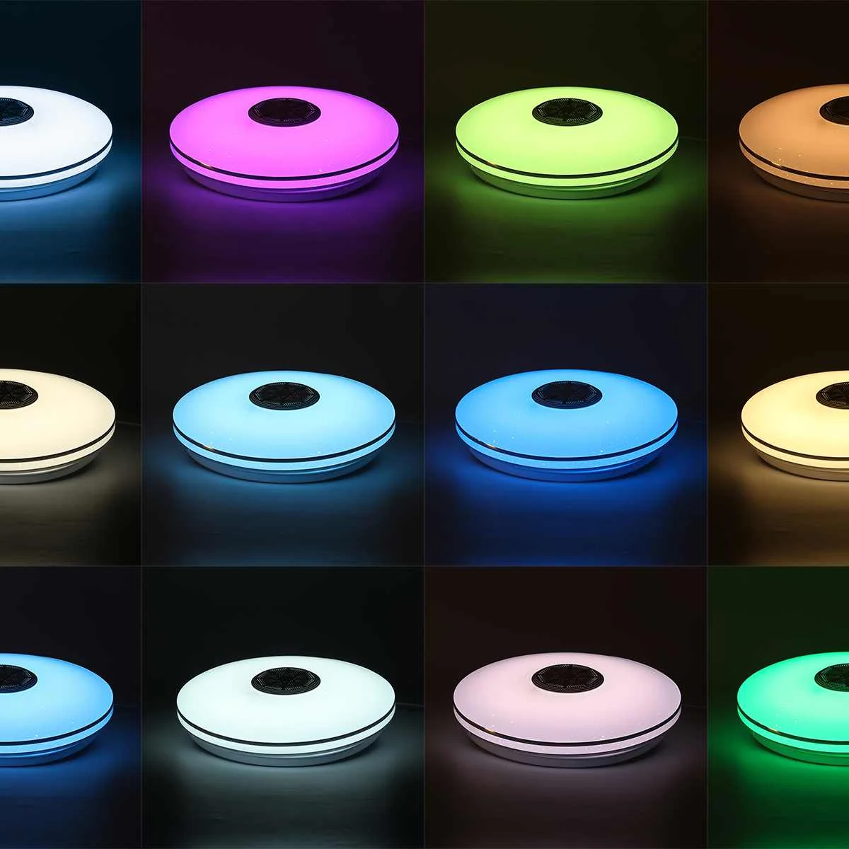 Посылка включает в себя:1x умный светодиодный потолочный светильник1x набор монтажных аксессуаров1x пульт дистанционного управленияПараметрыНапряжение: 110-245 В/50-60 ГцМощность: 300 ВтДиаметр: 34 смРежим управления: настенный выключатель + управление мобильным приложением + пульт дистанционного управления + интеллектуальное аудио управлениеСветильник режимы: подстраиваются под тусклый или яркий, ритм музыки прозрачный градиентный фон красочный flashinging светильникВерсия Wi-Fi: Поддержка amazon, google, Tmall Genie, Xiaodu и другого интеллектуального Аудио управления, мобильный пульт дистанционного управленияОсобенности:* Изготовлено из Высококачественная светодиодная микросхема, толстый акрил, который обеспечивает долгий срок службы, долговечный для использования.* Умное управление: светильник может управляться различными способами, такими как настенный выключатель, мобильное приложение и пульт дистанционного управления, что обеспечивает более удобство управления.* Мульти-Режим работы: он имеет много режимов, белый светильник, теплый светильник, нейтральный светильник, прочный светильник, режимы сцены, такие как музыкальный ритм, градиент, красочный светильник с подсветкой, чтобы удовлетворить ваши различные потребности гибко, очень практично для вашей повседневной жизни.* Мобильное приложение и bluetooth могут регулировать яркость, менять цвет, пульт дистанционного управления может включать и выключать светильник, регулировать яркость и цвет, воспроизводить песни, регулировать громкость, это такой умный потолочный светильник, который изменит вашу концепцию на потолочный светильник, Это как верный компаньон, который позаботится о вашем настроении.* Энергосбережение: с ярким источником высокой мощности Светодиодный светильник, экономия большой мощности по сравнению с тем же уровнем яркости нормальный светильник, который не применяется светодиодный чип, экологически чистый.* Умное управление: это приложение доступно для iphone Apple, iPad и устройств Android.