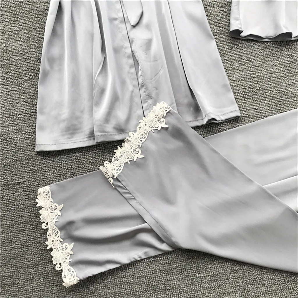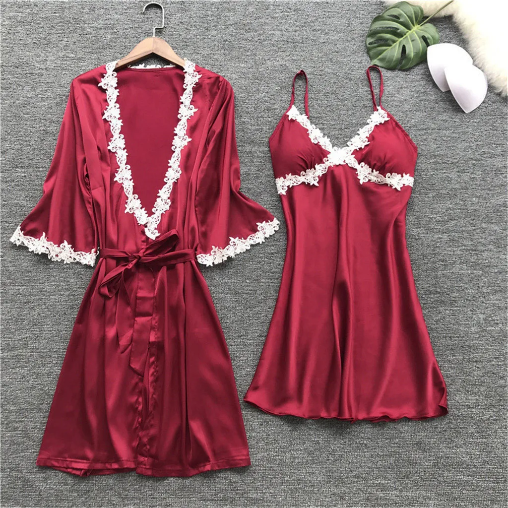 5 шт. шелковый халат, костюм для сна, Женская кружевная атласная пи...
