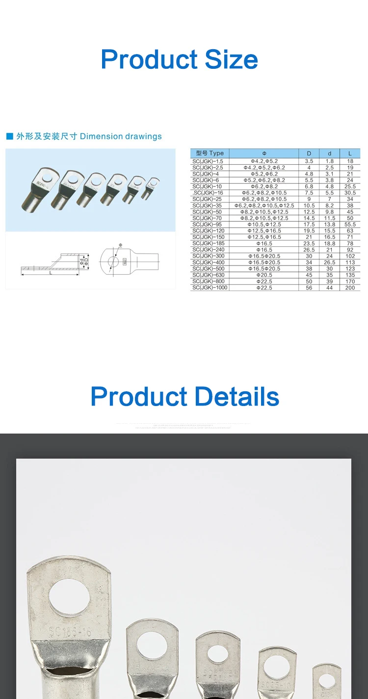 5 шт., клеммные колодки из луженой меди, SC2.5 SC4 SC6 SC10 SC16