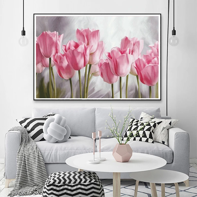 Алмазная 5D картина сделай сам, картина с розовыми цветами тюльпанов, фотомозаика, вышивка крестиком, домашний декор, подарок ручной работы