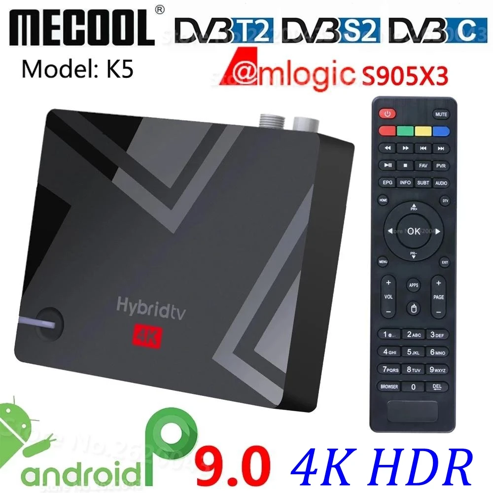 ТВ-приставка MECOOL K5 DVB T2 S2, 2 + 16 ГБ, Android 9,0, Amlogic S905X3, 2,4 ГГц, 5G, двойная, Wi-Fi, LAN, 100 м, медиаплеер, запись PVR