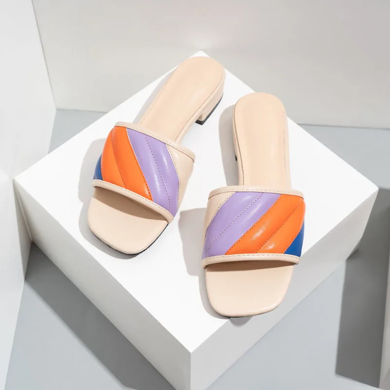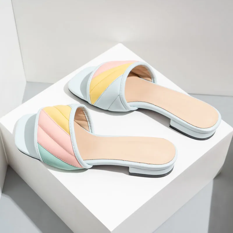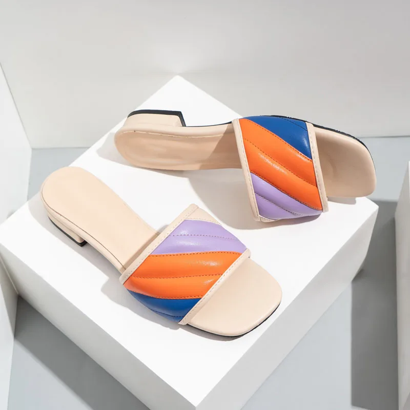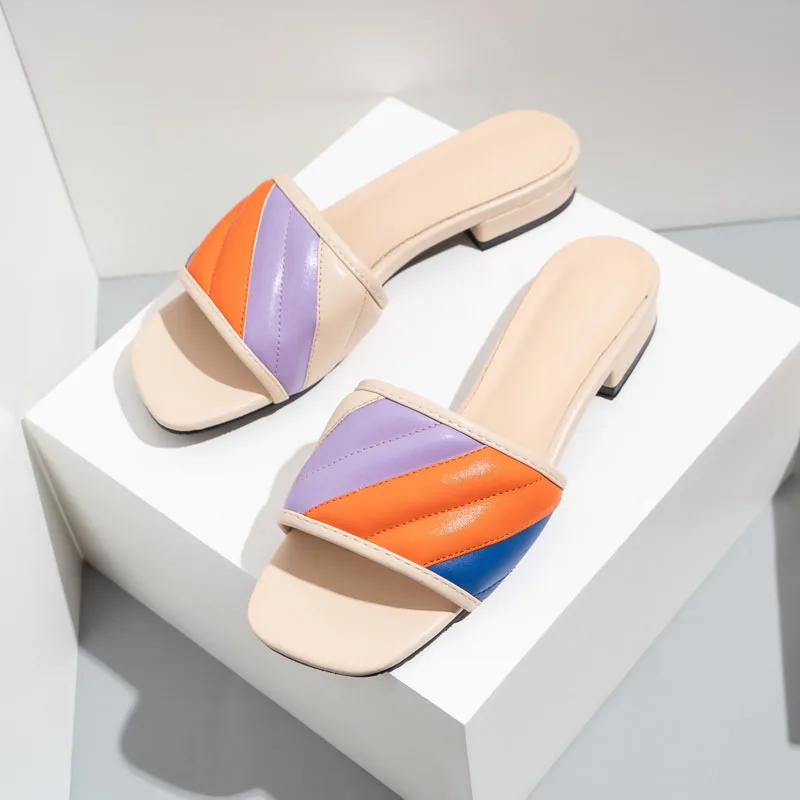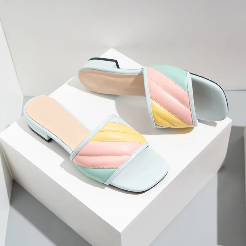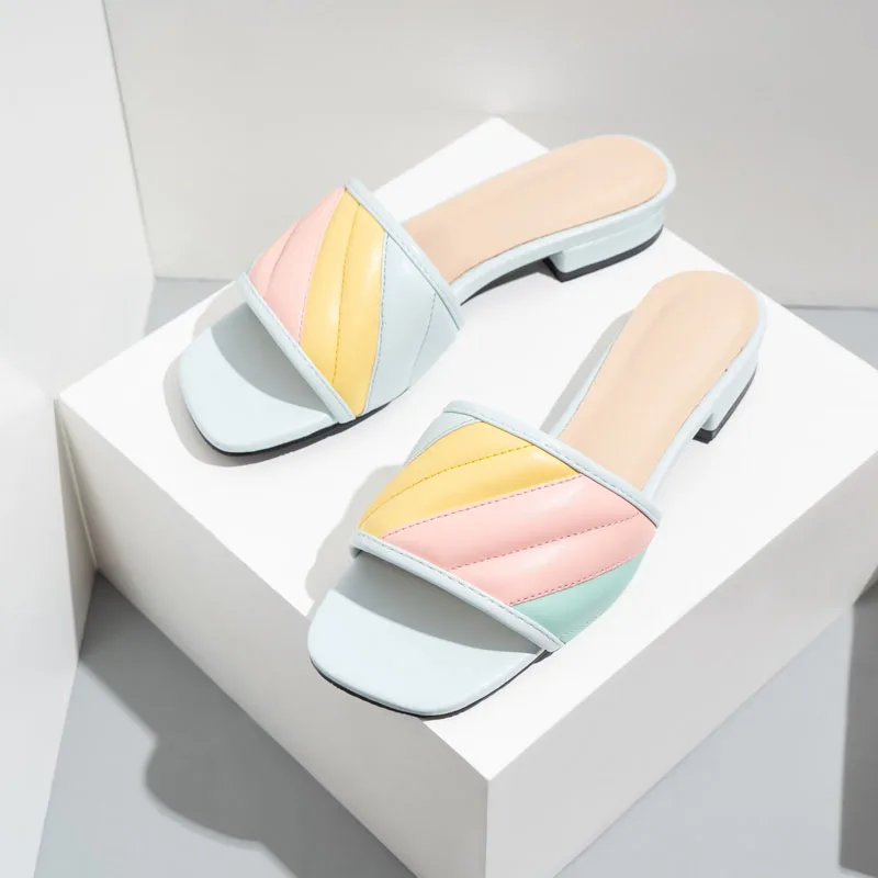 Женские босоножки с квадратным носком, разноцветные сандалии на пло...