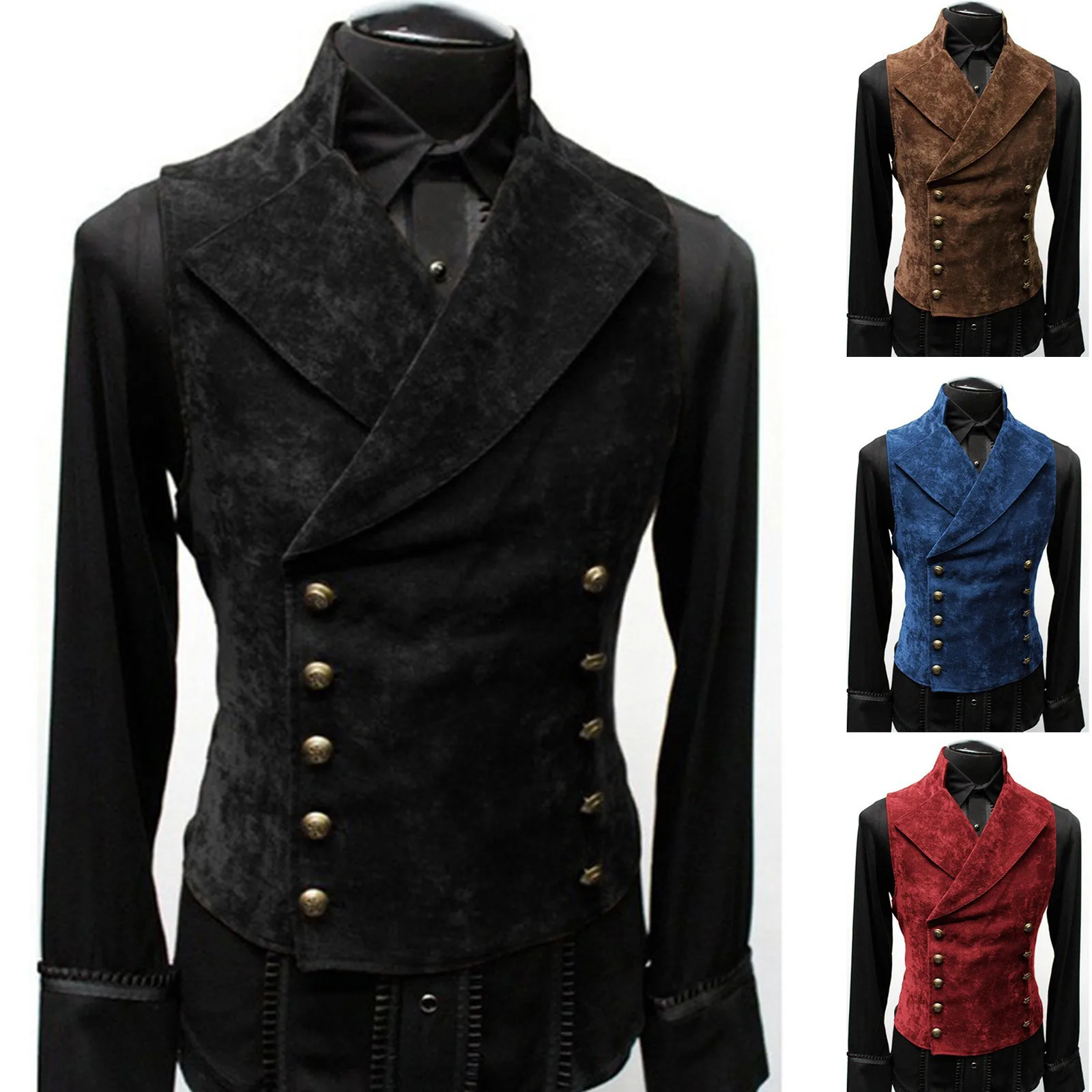 Мужской Готический строгий жилет с воротником в стиле ретро, однотонная приталенная мужская одежда на пуговицах, официальная деловая куртка, Майки