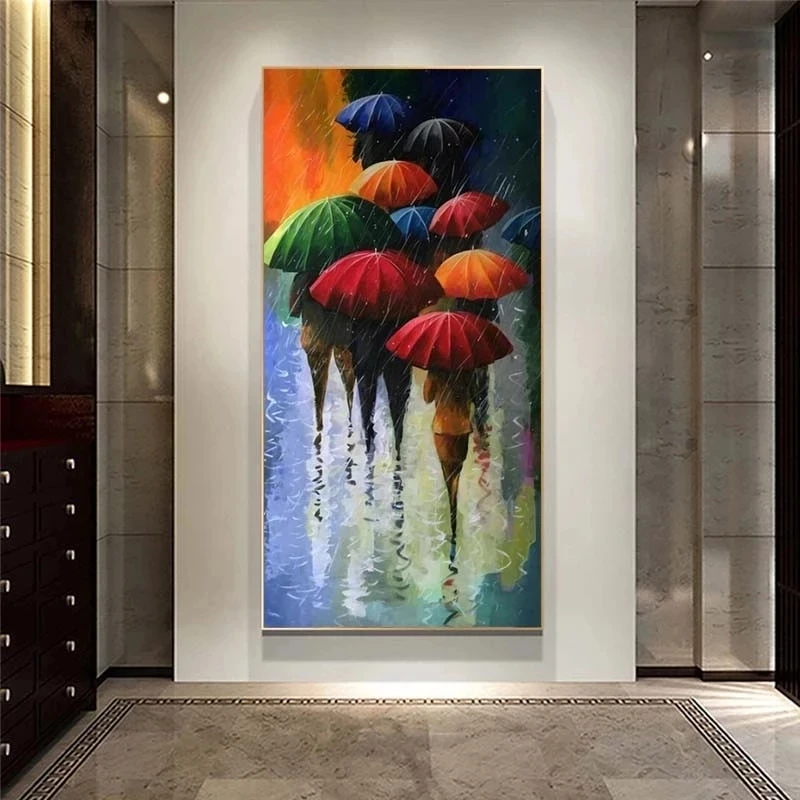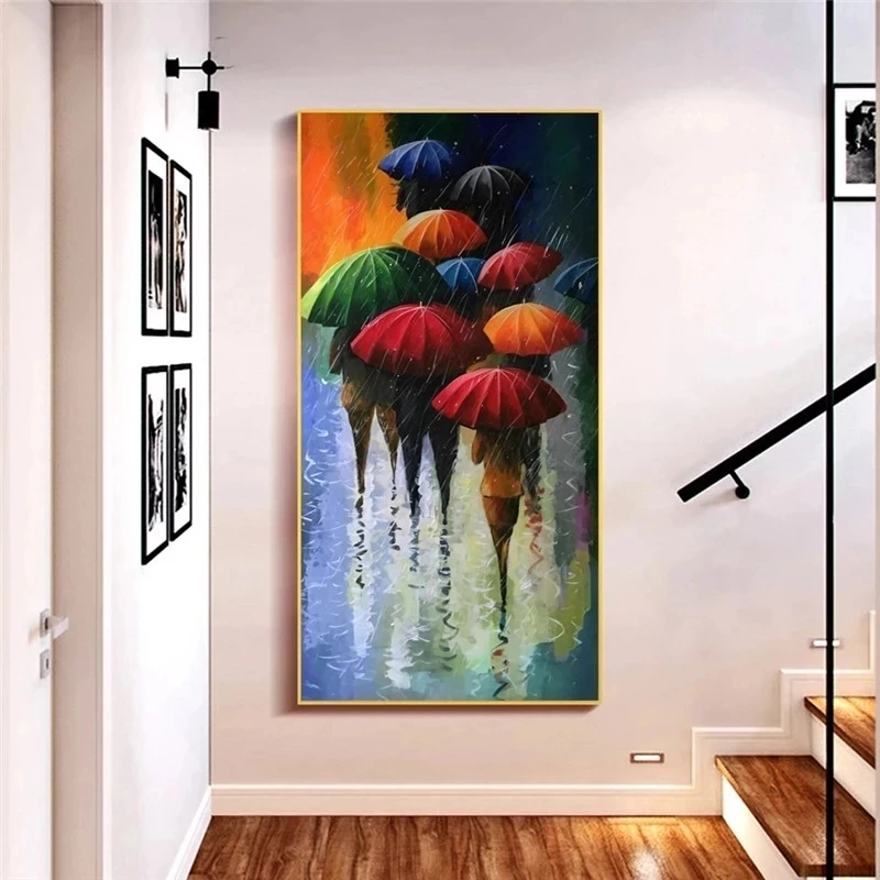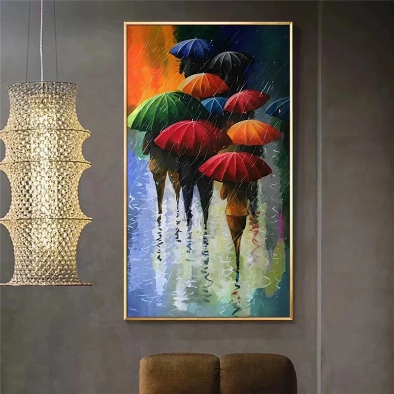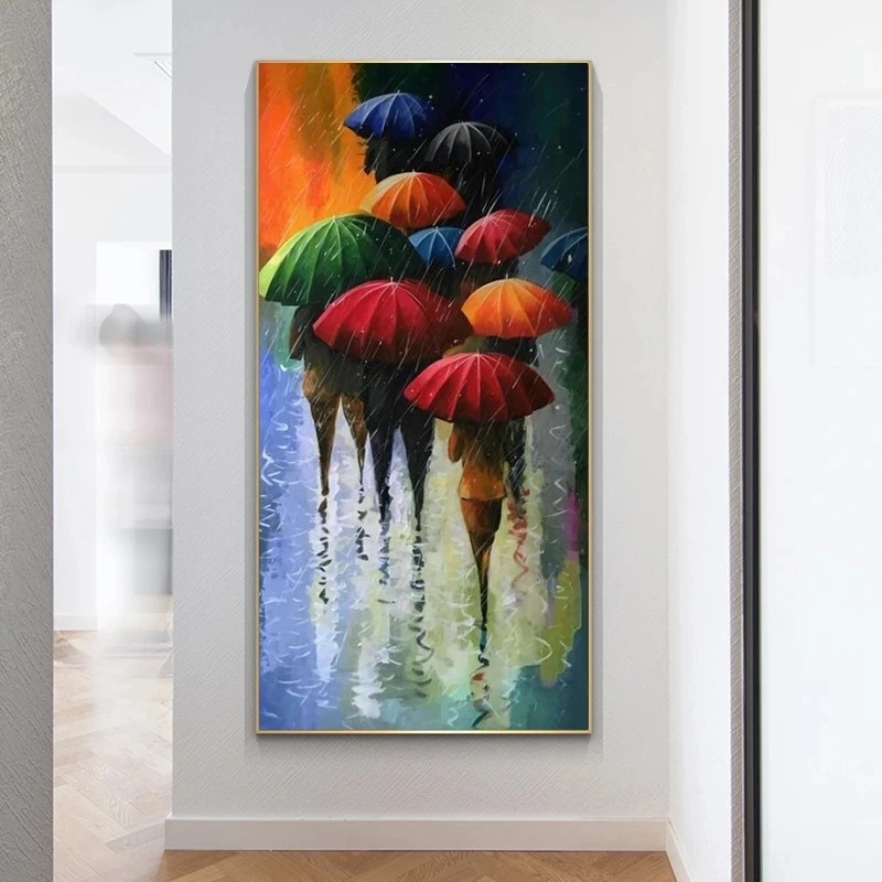 Абстрактная картина маслом на холсте зонт в дождливую ночь, настенн...