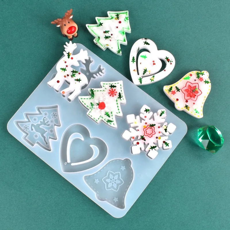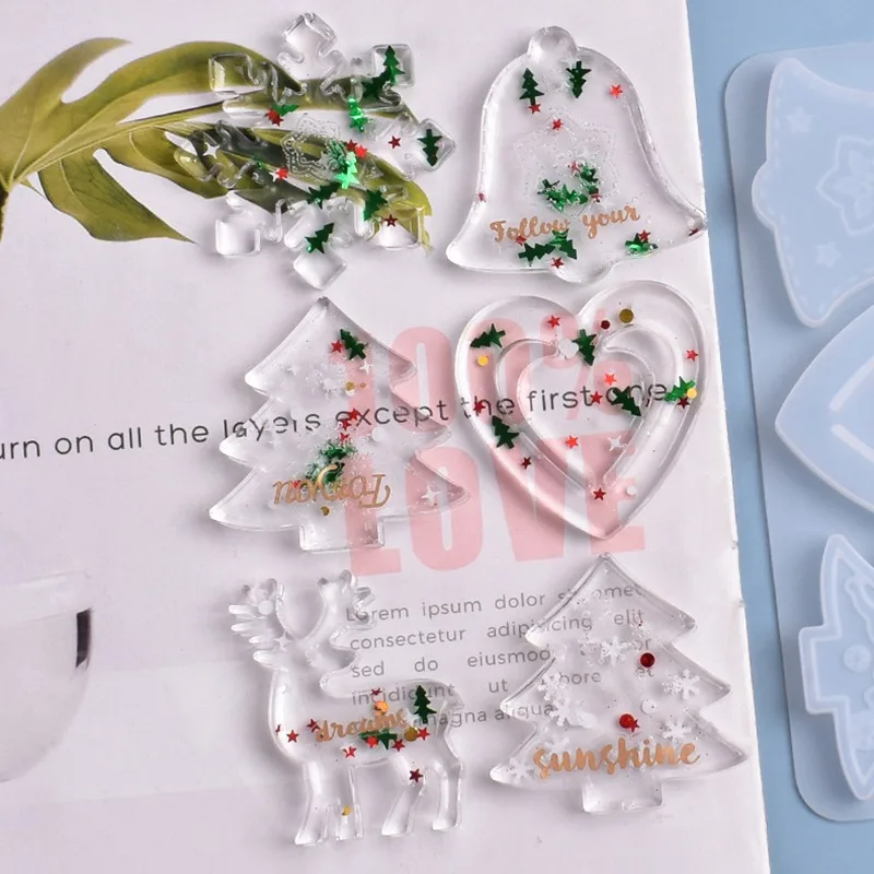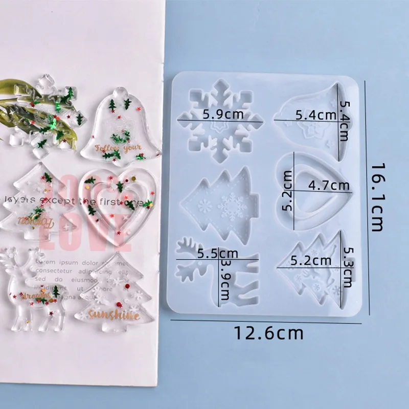 Рождественская елка снежинка лося кулон смола литье формы брелок Рождественское украшение силиконовые смолы формы для искусства РемеслаФормы для рождественской тематики, включая рождественскую елку, лося, снежинку и т. д.Наши силиконовые формы из смолы имеют гладкие интерьеры,Таким образом, готовая продукция является гибкой и легко снимается с формы.После сдавливания и деформации, он может быть восстановлен до исходного состояния после того, как какое-то время стоит ..Этот комплект пресс-форм из смолы идеально подходит для украшения ключей, мобильных телефонов,Кошельки, сумки, рюкзаки, автомобили или другие замечательные предметы.Хороший выбор, как вечерние принадлежности, игровые призы, классные призы, рождественские подарки и так далее,Подходит для Рождества, дня рождения, семейного сбора и т. д.Людям понравится этот милый Рождественский брелок с героями мультфильмов.